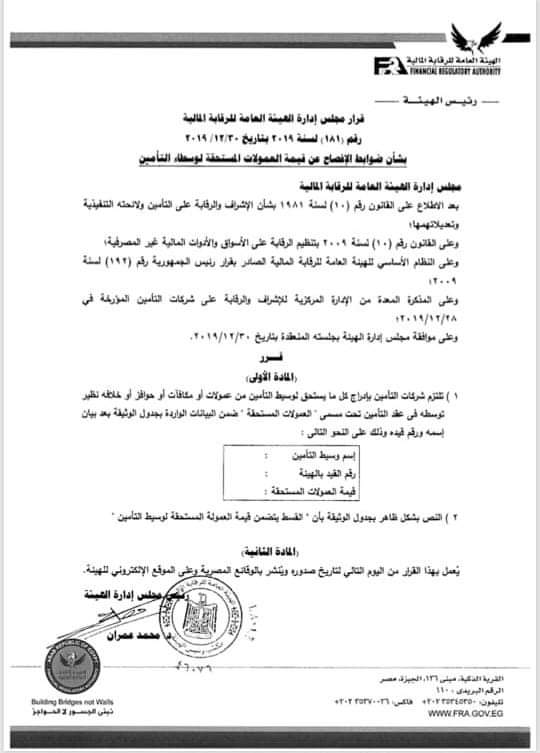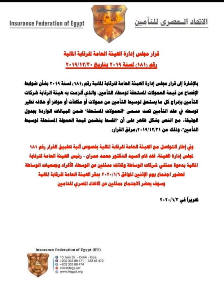 «المصري للتأمين» يخاطب الشركات لتحديد توقيت ميكنة أنظمتها المحاسبية..ويبحث آليات تطبيق قرار «العمولات المستحقة» بواسطة إسلام عبد الحميد 4 يناير 2020 | 11:41 ص كتب إسلام عبد الحميد 4 يناير 2020 | 11:41 ص علاء الزهيري - رئيس الاتحاد المصري للتأمين النشر FacebookTwitterPinterestLinkedinWhatsappTelegramEmail 32 كشف علاء الزهيري، رئيس مجلس إدارة الإتحاد المصري للتأمين، عن مخاطبة الإتحاد لشركات التأمين العاملة بالسوق المصرية لموافاته بالوضع الحالي بشركات التأمين من ميكنة الأنظمة المحاسبية لحساب قسط التأمين المستحق وطباعة الوثيقة لتحديد المدة المتوقعة لتعديل نظام الحاسب الآلي لتطبيق قرار الهيئة العامة للرقابة المالية بشأن إدراج عمولات وسطاء التأمين بالوثيقة. وأضاف الزهيري في تصريحات خاصة لـ«أموال الغد»، أنه طالب الإتحاد شركات التأمين بمخاطبته بنوعية المستحقات الإنتاجية الواجب ظهورها على الوثائق المسلمة للعملاء بالشركات، مشيراً إلى أن ذلك سيدعم الإتحاد عند التنسيق مع الهيئة العامة للرقابة المالية في تنفيذ القرار السابق ذكره. إقرأ أيضاً اتحاد شركات التأمين: 46.7 مليار جنيه تعويضات سددها القطاع خلال 2025 اتحاد الشركات يدرس إعداد وثيقة تأمين مخصصة للسيارات البرمائية اتحاد شركات التأمين: 9 توقعات لتجديدات اتفاقيات الإعادة الفترة القادمة وكان قد أصدر مجلس إدارة الهيئة العامة للرقابة المالية قرارا رقم 181 لسنة 2019 يلزم شركات التأمين بإدراج كل ما يستحق الوسيط التأمين من عمولات أو مكافأت أو حوافز أو خلافه نظير لتوسطه في عقد التأمين تحت مسمى “العمولات المستحقة”. وأشار الزهيري إلى قيام الدكتور محمد عمران رئيس مجلس إدارة الهيئة العامة للرقابة المالية بدعوة ممثلي شركات الوساطة والوسطاء الأفراد وجمعيات الوساطة لعقد إجتماع مشترك مع قيادات الهيئة الإثنين المقبل لبحث قرار إدراج عمولات الوسطاء بوثيقة التأمين. وأوضح أنه من المتوقع أن يشهد الإجتماع بحث الآلية الواجبة لتطبيق قرار الهيئة بشأن إدراج عمولات ومكافأت وحوافز وسطاء التأمين ضمن البيانات الواردة بجدول الوثيقة الصادرة للعميل. وأوضح قرار مجلس إدارة الهيئة الصادر الأسبوع الماضي أنه يتم إدراج هذه البيانات الواردة بجدول الوثيقة بعد بيان إسم الوسيط ورقم قيده في سجلات الهيئة العامة للرقابة المالية، مشيراً أنه يتم أيضا توضيح بنص ظاهر بجدول ال يبقى بأن القسط يتضمن قيمة العمولة المستحقة لوسيط التأمين. وأضاف أنه تم إصدار هذا القرار عقب الإطلاع على قانون الإشراف والرقابة على التأمين في مصر الصادر بالقانون رقم 10 لسنة 1981 ولائحته التنفيذية وتعديلاتهما؛ وكذلك الإطلاع على القانون رقم 10 لسنة 2009 بتنظيم الرقابة على الأسواق والأدوات المالية غير المصرفية؛ بجانب قرار رئيس الجمهورية رقم 192 لسنة 2009 بإصدار النظام الأساسي للهيئة العامة للرقابة المالية كما تم إصدار هذا القرار عقب الإطلاع على المذكرة المعدة من الإدارة المركزية للإشراف والرقابة على شركات التأمين المؤرخة في 28/12/2019؛ وكذلك على موافقة مجلس إدارة الهيئة العامة للرقابة المالية بجلسته المنعقدة بتاريخ 30/12/2019. أقساطالإتحاد المصري للتأمينالعمولات المستحقةعلاء الزهيري