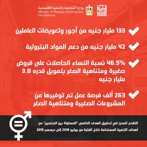 وزارة التخطيط تصدر تقريرًا يرصد التقدم المحقق في تحقيق هدف التنمية المستدامة للمساواة بين الجنسين بواسطة إسلام عبد الحميد 17 مارس 2020 | 11:36 ص كتب إسلام عبد الحميد 17 مارس 2020 | 11:36 ص هالة السعيد وزيرالتخطيط والتنمية الاقتصادية النشر FacebookTwitterPinterestLinkedinWhatsappTelegramEmail 14 14 مليار جنيه قيمة استفادة المرأة من معاش الضمان الاجتماعي 263 ألف فرصة عمل تم توفيرها من المشروعات الصغيرة ومتناهية الصغر إقرأ أيضاً «التمويل الدولية» تُطلق 5 مشروعات جديدة بـ208 ملايين دولار في مصر وأنحاء شرق أفريقيا هيئة الرقابة المالية تطلق نسخة محدثة من سجل الضمانات المنقولة جهاز تنمية المشروعات يوقع عقد تمويل مع شركة ريفي بقيمة 300 مليون جنيه أصدرت وزارة التخطيط والتنمية الاقتصادية، تقريرًا يرصد التقدم المحرز في تحقيق أهداف التنمية المستدامة، فيما يتعلق بالهدف الخامس والخاص بموضوع “المساواة بين الجنسين” وذلك في إطار برنامج عمل الحكومة (18/2019 – 21/2022)، وذلك خلال الفترة من يوليو 2018 إلى ديسمبر 2019. وأكدت الدكتورة هالة السعيد، وزيرة التخطيط والتنمية الاقتصادية، على جهود الدولة والخطوات الجادة التي قطعتها في مجال التمكين الاقتصادي للمرأة، سواء في إطار استراتيجية التنمية المستدامة، رؤية مصر 2030، أو في إطار الاستراتيجية الوطنيةِ لتمكين المرأةَ 2030، والتي استهدفت معالجة العوامل المؤثرة على التمكين الاقتصادي للمرأة، وتنمية قدراتها لتوسيع خيارات العمل أمامها وزيادة مشاركتها في قوة العمل وتحقيق تكافؤ الفرص في توظيف النساء في كل القطاعات بما في ذلك القطاع الخاص وريادة الأعمال، بالإضافة الى جهود الدولة لتنفيذ برامج التدريب وبناء القدرات الموجهة للمرأة المصرية، وكذلك جهود تمكين المرأة اقتصاديًا من خلال تشجيع قطاع المشروعات الصغيرة والمتوسطة، والذي يعد أحد القطاعات الرئيسة التي تستوعب فرص العمل اللائق والمنتج للسيدات في مختلف الأقاليم والمحافظات المصرية. وأشارت وزيرة التخطيط إلى أنه تم توجيه حوالي 242 مليار جنيه خلال عام ونصف؛ من يوليو 2018 إلى ديسمبر 2019، تستفيد منها المرأة بشكل مباشر. أضافت السعيد أنه خلال الفترة ذاتها، بلغت استفادة المرأة من معاش الضمان الاجتماعي حوالي 14 مليار جنيه، ومن نفقات علاج المواطنين نحو 3.4 مليار جنيه، ومن دعم السلع التموينية 43.5 مليار جنيه، ومن أجور وتعويضات العاملين 133 مليار جنيه، ودعم المواد البترولية حوالي 42 مليار جنيه. وأوضح التقرير أن نسبة النساء الحاصلات على قروض صغيرة ومتناهية الصغر، بلغت 46.5%، بتمويل قدره 3.8 مليار جنيه، كما بلغت فرص العمل التي تم توفيرها من المشروعات الصغيرة ومتناهية الصغر حوالى 263 ألف فرصة عمل. وتابع التقرير أنه تم تطوير أربعة مراكز لاستضافة النساء المعرضات للعنف، كما وصل عدد النساء اللاتي تم تعزيز قدراتهن في مجال قطاع الأعمال والتسويق إلى 30.4 ألف، منها 12.4 ألف في النصف الأول من العام المالى 19/2020. وأشار تقرير وزارة التخطيط إلى أنه تم تنفيذ نحو 3314 فعالية ثقافية خاصة بالمرأة خلال العام ونصف الماضيين، وفى إطار المحافظة والاهتمام بصحة المرأة؛ تم فحص حوالي 4 مليون إمرأة، ضمن مبادرة “100 مليون صحة” للقضاء على فيروس “سي”. اللينك المختصرللمقال: https://amwalalghad.com/371r التخطيطالتنمية الاقتصاديةالتنمية المستدامةالمشروعات الصغيرةهالة السعيد