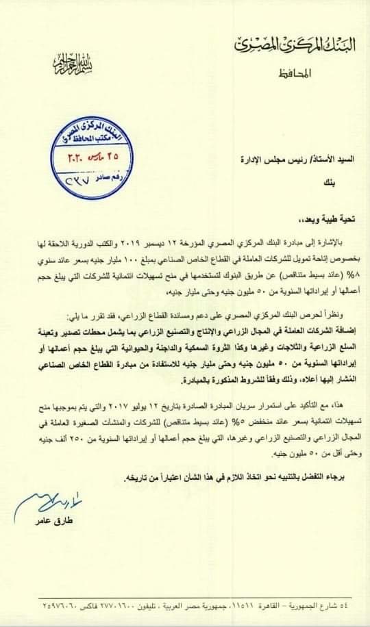 ننشر تعليمات « المركزي» بضم القطاع الزراعي لمبادرة تمويل الصناعة بـ 100 مليار جنيه بواسطة سناء علام 26 مارس 2020 | 10:30 ص كتب سناء علام 26 مارس 2020 | 10:30 ص البنك المركزي المصري النشر FacebookTwitterPinterestLinkedinWhatsappTelegramEmail 36 كشف المجلس التصديري للصناعات الغذائية، عن صدور تعليمات من طارق عامر محافظ البنك المركزي بشأن ضم الشركات العاملة في مجال التصنيع الزراعي والغذائي لمبادرة تمويل الشركات العاملة في القطاع الخاص الصناعي بمبلغ 100 مليار جنيه بسعر عائد سنوي بسيط متناقص 8%. وحصل اموال الغد على صورة من القرار الذي صدر امس للبنوك المصرية، حيث نص على ” انه نظرا لحرص البنك المركزي على دعم ومساندة القطاع الزراعي، قرر البنك اضافة الشركات العاملة بالمجال الزراعي والإنتاج والتصنيع الزراعي بما يشمل محطات تصدير وتعبئة السلع الزراعية والثلاجات وغيرها، وكذا الثروة السمكية والداجنة والحيوانية التي يبلغ حجم أعمالها او ايراداتها السنوية من 50 مليون جنيه إلى مليار جنيه، للاستفادة من مبادرة القطاع الزراعي وفقا للشروط المذكورة في المبادرة. كما شملت التعليمات التأكيد على سريان المبادرة الصادرة في 12 يوليو 2017 والتي بموجبها يتم منح تسهيلات ائتمانية بسعر عائد منخفض 5% ” عائد بسيط متناقص”، للشركات والمنشآت الصغيرة العاملة في المجال الزراعي والتصنيع الزراعي وغيرها والتي يبلغ حجم أعمالها أو ايراداتها السنوية من 250 الف جنيه وحتى اقل من 50 مليون جنيه. اللينك المختصرللمقال: https://amwalalghad.com/p8az البنك المركزيالقطاع الزراعيمبادرة تمويل الصناعة
