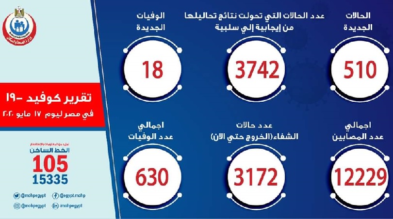 الصحة: تسجيل 510 حالة إيجابية جديدة لفيروس كورونا و18 وفاة بواسطة محمود شعبان 17 مايو 2020 | 7:51 م كتب محمود شعبان 17 مايو 2020 | 7:51 م معدلات كورونا في مصر النشر FacebookTwitterPinterestLinkedinWhatsappTelegramEmail 19 أعلنت وزارة الصحة والسكان، اليوم الأحد، عن خروج 222 من المصابين بفيروس كورونا من مستشفيات العزل والحجر الصحي، وذلك بعد تلقيهم الرعاية الطبية اللازمة وتمام شفائهم وفقًا لإرشادات منظمة الصحة العالمية، ليرتفع إجمالي المتعافين من الفيروس إلى 3172 حالة حتى اليوم. وأوضح بيان وزارة الصحة والسكان ، أن عدد الحالات التي تحولت نتائج تحاليلها معمليًا من إيجابية إلى سلبية لفيروس كورونا (كوفيد-19) ارتفع ليصبح 3742 حالة، من ضمنهم الـ 3172 متعافيًا. إقرأ أيضاً رئيس الوزراء: خطط واضحة لخفض الدين العام وتوسيع دور القطاع الخاص الإعلامي لمجلس الوزراء يوضح حقيقة نقص أدوية البرد والأمراض المزمنة «الإحصاء» :إنفاق الدولة على الصحة 804.4 مليار جنيه خلال الـ 10 سنوات الماضية وأضاف أنه تم تسجيل 510 حالات جديدة ثبتت إيجابية تحاليلها معمليًا للفيروس، وذلك ضمن إجراءات الترصد والتقصي التي تُجريها الوزارة وفقًا لإرشادات منظمة الصحة العالمية، لافتًا إلى وفاة 18 حالة جديدة. وقال إن جميع الحالات المسجل إيجابيتها للفيروس بمستشفيات العزل والحجر الصحي تخضع للرعاية الطبية، وفقًا لإرشادات منظمة الصحة العالمية. وذكر أن إجمالي العدد الذي تم تسجيله في مصر بفيروس كورونا المستجد حتى اليوم، الأحد، هو 12229 حالة من ضمنهم 3172 حالة تم شفاؤها وخرجت من مستشفيات العزل والحجر الصحي، و 630 حالة وفاة. وتواصل وزارة الصحة والسكان رفع استعداداتها بجميع المحافظات، ومتابعة الموقف أولاً بأول بشأن فيروس “كورونا المستجد”، واتخاذ كافة الإجراءات الوقائية اللازمة ضد أي فيروسات أو أمراض معدية، كما تم تخصيص الخط الساخن “105”، و”15335″ لتلقي استفسارات المواطنين بشأن فيروس كورونا المستجد والأمراض المعدية. اللينك المختصرللمقال: https://amwalalghad.com/pkq3 الصحةفيروس كورونا