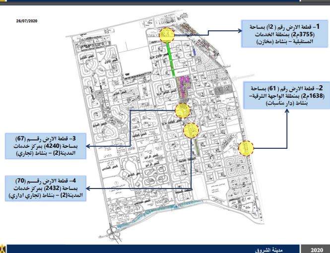 أراضي استثمارية…طرح 5 قطع أراضي بأنشطة خدمية بالشروق بمساحة 12 ألف م2 بواسطة مها عصام 28 يوليو 2020 | 11:23 ص كتب مها عصام 28 يوليو 2020 | 11:23 ص النشر FacebookTwitterPinterestLinkedinWhatsappTelegramEmail 47 طرحت هيئة المجتمعات العمرانية الجديدة 4 قطع أراضي مخصصة لأنشطة خدمية بمدينة الشروق، بنظام التخصيص الفوري، وذلك بمساحة إجمالية تبلغ نحو 12 ألف م2. القطعة الأولى إقرأ أيضاً مسئولو «الإسكان» يتابعون مستجدات توفيق أوضاع الأراضي المضافة بمدينتي الشروق والعبور الجديدة للحصول على 200 ألف متر.. «وتد» تتفاوض مع «المجتمعات العمرانية» للتوسع بالمجمعات الصناعية نائب رئيس هيئة المجتمعات العمرانية يتابع سير العمل بمدينتى الشيخ زايد و6 أكتوبر تقع على مساحة 3755 م2 بمنطقة الخدمات المستقبلية شمال المدينة مخصصة لنشاط المخازن، ويبلغ سعر المتر التقديري 1735 جنيه. وتتضمن اشتراطات تلك القطعة ما يلي:- لا تزيد النسبة البنائية عن 50 % من إجمالي مساحة قطعة الأرض ، والارتفاع أرضي وأول ويسمح بعمل ميزانين بالدور الأرضي بما لا يزيد عن 25 % من المساحة المبنية، مع الالتزام باشتراطات الدفاع المدني، ويتم تنفيذ المشروع خلال 3 سنوات تحتسب من تاريخ استلام قطعة الأرض. وبالنسبة لآلية السداد فيتم استكمال سداد الدفعة المقدمة بواقع 25 % من قيمة الأرض + 1 % مصاريف إدارية + 0.5 % مجلس أمناء على أن يتم التعامل بالسعر النهائي المعتمد من اللجنة العقارية الرئيسية، ويتم سداد باقي الثمن على 6 أقساط نصف سنوية متساوية نصف سنوية محملة بالأعباء المالية المقررة. ويتم تحميل كافة الأقساط بالأعباء المالية المقررة وفقا للفائدة المعلنة من البنك المركزي من تاريخ الإخطار بموافقة مجلس إدارة الهيئة وحتى تاريخ السداد، بالإضافة لـ2 % طبقا لتعليمات وزارة المالية و 0.5 % مصاريف إدارية. القطعة الثانية تقع على مساحة 1638 م2 بمنطقة الواجهة الشرقية مخصصة لنشاط دار مناسبات، ويبلغ السعر التقديري للمتر 5300 جنيه. وتتضمن اشتراطات تلك القطعة ما يلي:- لا تزيد النسبة البنائية عن 40 % من إجمالي مساحة قطعة الأرض ، والارتفاع بدروم + أرضي+ دورين متكرر، مع الالتزام باشتراطات الدفاع المدني، ويتم تنفيذ المشروع خلال 3 سنوات تحتسب من تاريخ استلام قطعة الأرض. وبالنسبة لآلية السداد فيتم استكمال سداد الدفعة المقدمة بواقع 25 % من قيمة الأرض + 1 % مصاريف إدارية + 0.5 % مجلس أمناء على أن يتم التعامل بالسعر النهائي المعتمد من اللجنة العقارية الرئيسية، ويتم سداد باقي الثمن على 6 أقساط نصف سنوية متساوية نصف سنوية محملة بالأعباء المالية المقررة. ويتم تحميل كافة الأقساط بالأعباء المالية المقررة وفقا للفائدة المعلنة من البنك المركزي من تاريخ الإخطار بموافقة مجلس إدارة الهيئة وحتى تاريخ السداد، بالإضافة لـ2 % طبقا لتعليمات وزارة المالية و 0.5 % مصاريف إدارية. القطعة الثالثة تقع على مساحة 4240 م2 بمركز الخدمات بالمدينة بنشاط تجاري. وتتضمن اشتراطات تلك القطعة ما يلي:- لا تزيد النسبة البنائية عن 40 % من إجمالي مساحة قطعة الأرض ، والارتفاع بدروم + أرضي+ دورين متكرر، مع الالتزام باشتراطات الدفاع المدني، ويتم تنفيذ المشروع خلال 3 سنوات تحتسب من تاريخ استلام قطعة الأرض. وبالنسبة لآلية السداد فيتم استكمال سداد الدفعة المقدمة بواقع 25 % من قيمة الأرض + 1 % مصاريف إدارية + 0.5 % مجلس أمناء على أن يتم التعامل بالسعر النهائي المعتمد من اللجنة العقارية الرئيسية، ويتم سداد باقي الثمن على 6 أقساط نصف سنوية متساوية نصف سنوية محملة بالأعباء المالية المقررة. ويتم تحميل كافة الأقساط بالأعباء المالية المقررة وفقا للفائدة المعلنة من البنك المركزي من تاريخ الإخطار بموافقة مجلس إدارة الهيئة وحتى تاريخ السداد، بالإضافة لـ2 % طبقا لتعليمات وزارة المالية و 0.5 % مصاريف إدارية. القطعة الرابعة تقع على مساحة 2432 م2 بمركز خدمات المدينة ومخصصة لنشاط تجاري إداري. وتتضمن اشتراطات تلك القطعة ما يلي:- لا تزيد النسبة البنائية عن 30 % من إجمالي مساحة قطعة الأرض ، و