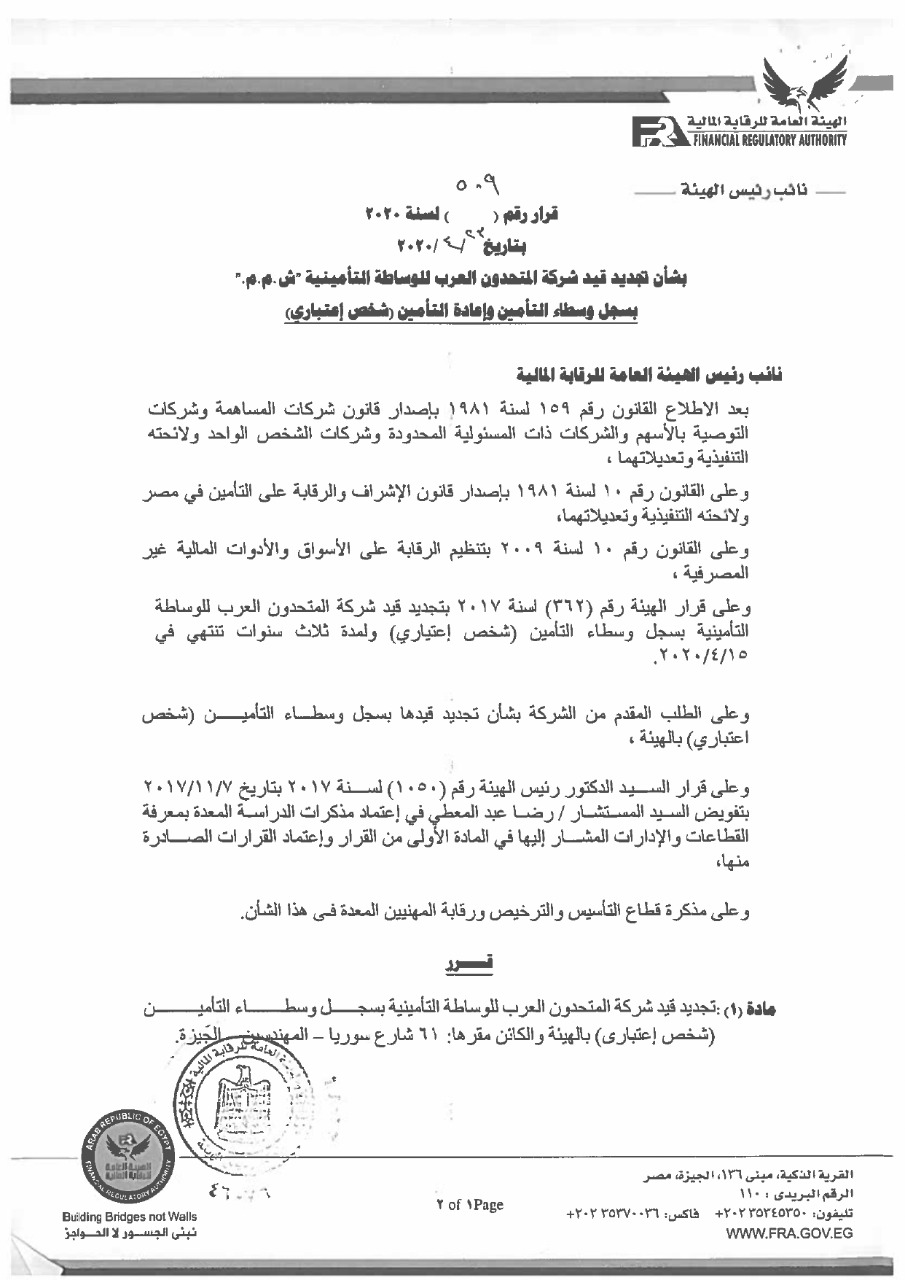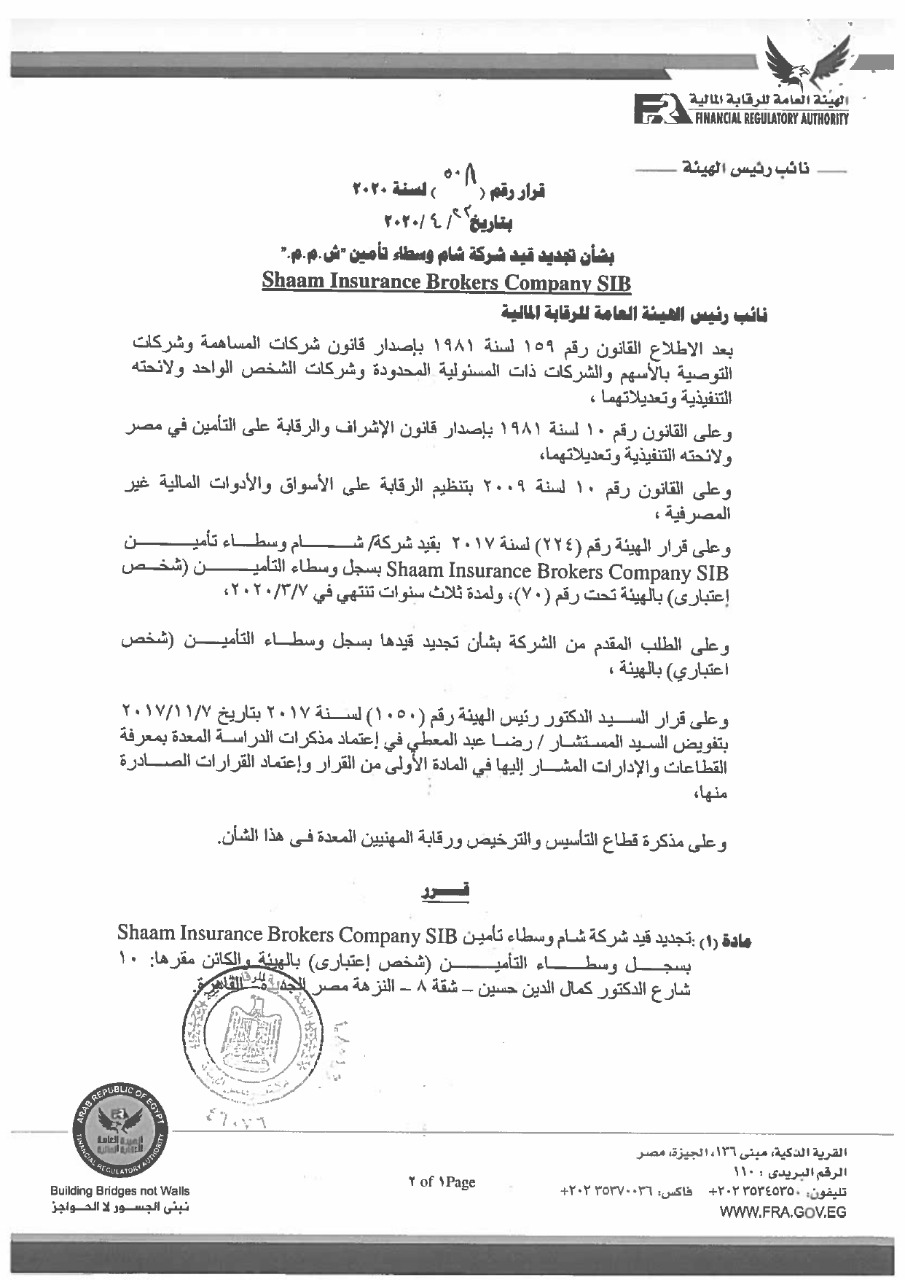 «الرقابة المالية» تجدد قيد 3 شركات لوساطة التأمين بسجلاتها لمدة 3 سنوات بواسطة إسلام عبد الحميد 11 أغسطس 2020 | 9:38 ص كتب إسلام عبد الحميد 11 أغسطس 2020 | 9:38 ص النشر FacebookTwitterPinterestLinkedinWhatsappTelegramEmail 103 أصدر المستشار رضا عبدالمعطي، نائب رئيس الهيئة العامة للرقابة المالية، 3 قرارات خلال الفترة الماضية لتجديد قيد 3 شركات بسجلات شركات وساطة التأمين ووساطة إعادة التأمين بالهيئة. والشركات الثلاثة التي تضمنتها القرارات شملت شركة ليدر للوساطة التأمينية، وشركة المتحدون العرب لوساطة التأمين، بجانب شركة شام وسطاء التأمين. إقرأ أيضاً استثمارات الدلتا للتأمين ترتفع إلى 2.24 مليار جنيه بنهاية 2025 وأصولها تتراجع 13% هيئة الرقابة المالية تدرس سبل تطوير ورقمنة صناديق التأمين الخاصة ورفع كفاءة أدائها المصريون يقسطون خدمات ومنتجات بقيمة 8.5 مليار جنيه خلال شهر وتضمنت القرار تجديد قيد هذه الشركات الثلاثة بسجل وسطاء التأمين (شخص اعتباري) لمدة 3 سنوات. ويبدأ سريان قرار تجديد ليدر للوساطة التأمينية منذ 19 أبريل الماضي، بينما قرار تجديد قيد شركة المتحدون العرب للوساطة يبدأ مطلع 16 أبريل الماضي، بينما شركة شام وسطاء التأمين يبدأ سريان تجديد قيدها منذ 8 مارس الماضي. ونص القرارات على أنها تم إصدارها عقب الآتي:- الإطلاع على القانون رقم 159 لسنة 1981 بإصدار قانون شركات المساهمة وشركات التوصية بالأسهم والشركات ذات المسئولية المحدودة وشركات الشخص الواحد، وعلى القانون رقم 10 لسنة 1981 بإصدار قانون الإشراف والرقابة على التأمين في مصر، وعلى القانون رقم 10 لسنة 2009 الخاص بتنظيم الرقابة على الأسواق والأدوات المالية غير المصرفية، وعلى قرار رئيس الهيئة رقم 1050 لسنة 2017 بتفويض المستشار رضا عبدالمعطي نائب رئيس الهيئة في اعتماد مذكرات الدراسة المعدة بمعرفة القطاعات والإدارات المشار إليها في المادة الأولى من القرار وإعتمادات القرارات الصادرة منها، وعلى المذكرة المعدة من قطاع التأسيس والترخيص ورقابة المهنيين المعدة في هذا الشأن. وكذلك قرارات الهيئة بقيد الشركات الثلاثة بسجل وسطاء التأمين (شخص اعتباري)، بجانب الطلبات المقدمة من هذه الشركات بشأن تجديد قيدها بالسجل. وقف تراخيص شركات الوساطة لمدة عام وكان قد أعلن الدكتور محمد عمران، رئيس الهيئة العامة للرقابة المالية عن موافقة مجلس ادارة الهيئة على وقف منح أية تراخيص جديدة لشركات الوساطة في التأمين أو الوساطة في إعادة التأمين لمدة عام، مع تكليف الإدارات المختصة في الهيئة بإعداد دراسة حول الشروط والضوابط المنظمة لعمل تلك الشركات بهدف تطويرها ومساعدتها على أداء الهدف من إنشاءها وفقا لأفضل الممارسات والتجارب الدولية في أسواق التأمين العالمية. وأوضح عمران أن قرار المجلس تم اتخاذه في ضوء ما كشفت عنه دراسة سوق التأمين المصري من أن عدد الشركات المرخص لها بممارسة نشاط الوساطة في التأمين كاف ويزيد عن حاجة السوق حالياً وبالتالي لا يوجد حاجة لزيادة عدد الشركات العاملة في نفس المجال بالترخيص لشركات جديدة لما قد يؤدى إليه ذلك من الأضرار بالصناعة، وان الأمر يحتاج لاستدعاء الخبرات العالمية والاستفادة من أفضل التجارب المناظرة في أسواق التأمين الرائدة. وقد رخصت الهيئة لأول شركة بمزاولة نشاط الوساطة التأمينية في شهر فبراير 2009، واستمر اصدار تراخيص مزاولة نشاط الوساطة التأمينية للشركات إلى أن بلغ عدد الشركات المرخص لها والساري ترخيصها بالسوق 90 شركة وساطة موزعة ما بين عدد 81 شركة وساطة فى التأمين وعدد 9 شركات للوساطة فى إعادة التأمين. ويتمثل نشاط الوساطة التأمينية في تمثيل العميل أمام شركات التأمين بغرض الحصول على أنسب الشروط والأسعار ومعاونتهم فنياً، والحصول على تعويض عادل وتقديم كافة الاستشارات الفنية الخاصة بالوثيقة والتغطيات الصادرة لهم. اللينك المختصرللمقال: https://amwalalghad.com/spq3 الهيئة العامة للرقابة الماليةتأمينشركات الوساطة