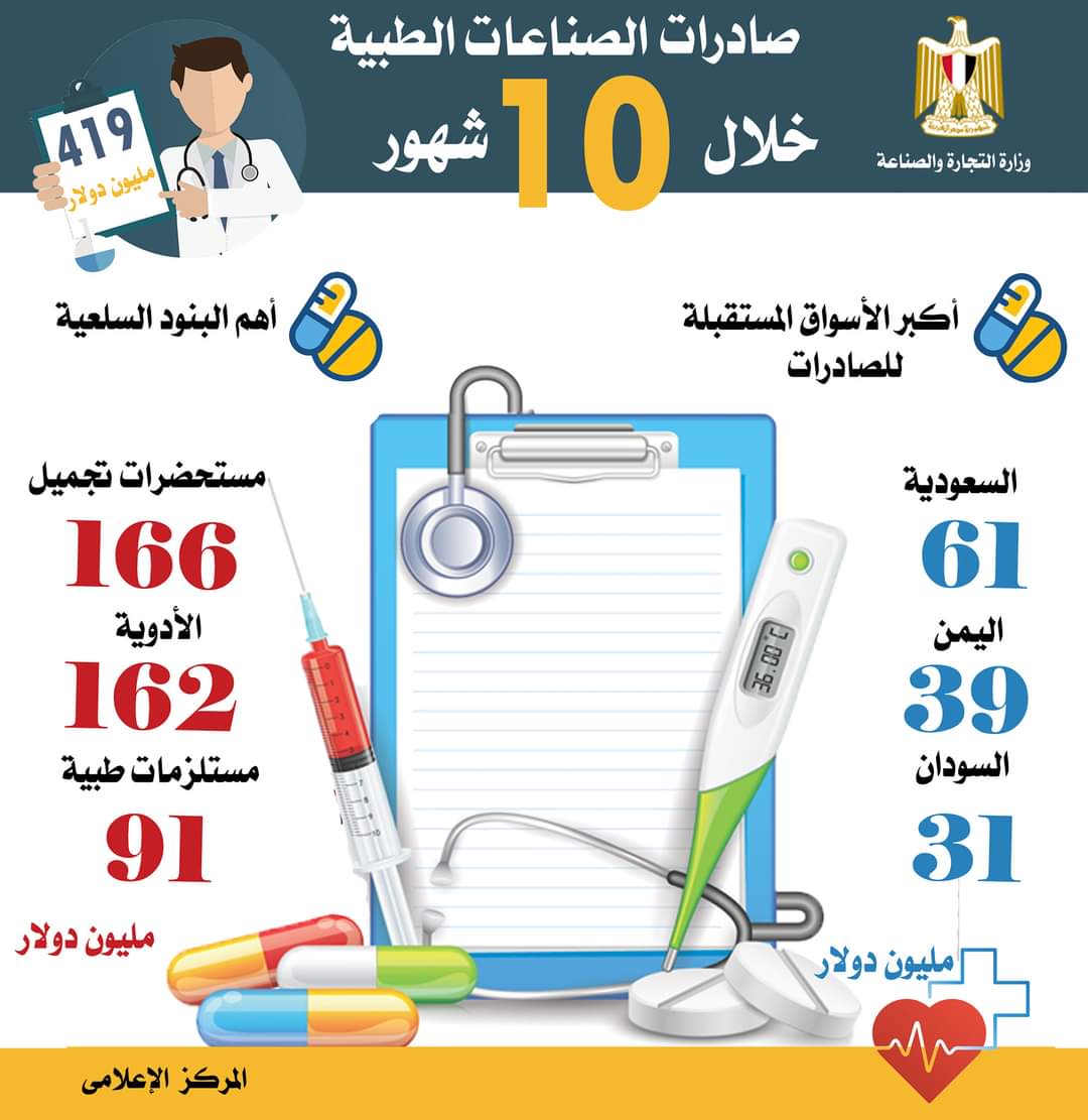 صادرات الصناعات الطبية المصرية تتراجع لـ 419 مليون دولار خلال 10 أشهر بواسطة سناء علام 16 ديسمبر 2020 | 8:44 م كتب سناء علام 16 ديسمبر 2020 | 8:44 م أرشيفية النشر FacebookTwitterPinterestLinkedinWhatsappTelegramEmail 45 تراجعت صادرات مصر من الصناعات الطبية بنسبة 3.2% خلال الـ 10 أشهر الأولى من 2020 لتسجل 419 مليون دولار في مقابل 433 مليون دولار خلال نفس الفترة من 2019. وأوضحت احصائيات المجلس التصديري للصناعات الطبية التي حصل اموال الغد على نسخة منها، أن 3 دول تستحوذ على 31.3% من إجمالي صادرات القطاع بقيمة 131 مليون دولار، يأتي على رأسها السعودية بقيمة 61 مليون دولار مستحوذة على 14.5% من إجمالي القيمة. إقرأ أيضاً التصديري للصناعات الطبية يستهدف نمو صادرات القطاع 40% لتصل 1.8 مليار دولار خلال 2026 صادرات مصر من مستحضرات التجميل ترتفع 82% خلال النصف الأول التصديري للصناعات الطبية: 33% نموًا بصادرات القطاع خلال 5 أشهر وبلغت قيمة صادرات الصناعات الطبية لليمن نحو 39 مليون دولار، وللسودان بنحو 31 مليون دولار. وانخفضت صادرات مصر من الأدوية لتسجل 162 مليون دولار خلال الفترة من ” يناير- أكتوبر 2020″، في مقابل 177 مليون دولار خلال نفس الفترة من 2019 بتراجع 8.5%. وشهدت صادرات مستحضرات التجميل المصرية تراجعا طفيفا خلال الـ 10 أشهر الأولى من 2020 لتبلغ 166 مليون دولار، في مقابل 167 مليون دولار خلال نفس الفترة من 2019 بانخفاض 0.6%. نمو صادرات المستلزمات الطبية وارتفعت قيمة صادرات مصر من المستلزمات الطبية خلال الفترة من ” يناير- أكتوبر 2020″ لتبلغ 91 مليون دولار، في مقابل 88 مليون دولار خلال نفس الفترة من 2019 بنمو 3.4%، يأتي ذلك في ظل نمو الطلب عليها في ظل تداعيات جائحة كورونا. وكانت قد بلغت صادرات الصناعات الطبية خلال العام الماضي نحو 540 مليون دولار ،ويستهدف المجلس مضاعفة صادرات القطاع خلال الـ 3 سنوات المقبلة. ويعمل المجلس التصديري على وضع مصر كمورد طبي متميز لكل من السوق الإقليمي والعالمي من خلال السعي المتواصل نحو الابتكار وزيادة القدرة التنافسية للصناعة المصرية، عبر دعم عمليات تسجيل الشركات في الأسواق الخارجية، وتبسيط إجراءات التصدير والتسجيل محليًا، وتطوير الخدمات الفنية والدورات التدريبية لتعزيز قدرات القطاع. ويسعى المجلس إلى تحفيز نمو القطاع من خلال التوسع فيه ، بما يخدم صادراته ويحقق له ميزات تنافسية، فضلا عن تشجيع الشركات العالمية باستخدام مصانعها في مصر كمركز تصنيع وتوزيع إقليمي . اللينك المختصرللمقال: https://amwalalghad.com/lnp2 صادرات الأدويةصادرات الصناعات الطبيةصادرات المستلزمات الطبيةصادرات مستحضرات التجميل