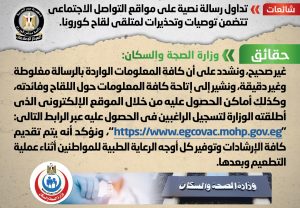 مجلس الوزراء ينفى إصدار رسائل نصية تتضمن توصيات وتحذيرات لمتلقى لقاح كورونا بواسطة أموال الغد 8 مايو 2021 | 1:21 م كتب أموال الغد 8 مايو 2021 | 1:21 م الدكتور مصطفى مدبولي رئيس مجلس الوزراء النشر FacebookTwitterPinterestLinkedinWhatsappTelegramEmail 10 كشف المركز الاعلامى لمجلس الوزراء، إنه فى ضوء ما تم تداوله من رسالة نصية تتضمن توصيات وتحذيرات لمتلقي لقاح كورونا، تواصل المركز مع وزارة الصحة والسكان، والتي نفت تلك الأنباء. وأكدت وزارة الصحة أنه لا صحة للرسالة النصية المتداولة على مواقع التواصل الاجتماعي والتي تتضمن توصيات وتحذيرات لمتلقي لقاح كورونا، مُشددةً على أن كافة المعلومات الواردة بالرسالة مغلوطة وغير دقيقة، مشيرةً إلى إتاحة كافة المعلومات حول اللقاح وفائدته، وكذلك أماكن الحصول عليه من خلال الموقع الإلكتروني الذي أطلقته الوزارة لتسجيل الراغبين في الحصول عليه عبر الرابط التالي: “https://www.egcovac.mohp.gov.eg”، مؤكدةً أنه يتم تقديم كافة الإرشادات وتوفير كل أوجه الرعاية الطبية للمواطنين أثناء عملية التطعيم وبعدها. إقرأ أيضاً «الصحة»: 2.59 مليار جنيه إجمالي المبالغ المنصرفة للقطاع الخاص ضمن التأمين الصحي الشامل خلال 2024/2025 الحكومة تُسرّع تنفيذ المرحلة الثانية من التأمين الصحي الشامل وتدرس ضم الإسكندرية مجلس الوزراء يكشف حقيقة التنازل عن أرض بالسخنة لصالح شركة قطرية وفي سياق متصل، هناك عدد من التدابير والإرشادات الواجب اتباعها قبل وبعد تلقي اللقاح، وتتمثل إرشادات ما قبل تلقي اللقاح في ضرورة إخبار الطبيب عند الشعور بأية أعراض مرضية قبل تلقى اللقاح، وكذلك إخباره بالتاريخ المرضي بالتفصيل، وما إذا كان هناك معاناة من أي مرض مزمن ومدى التحكم به والخطة العلاجية، فضلاً عن إخبار الطبيب بأي رد فعل تحسسي من أى من اللقاحات التي تلقاها سابقاً، هذا ومن الضروري التأكد من أخذ الجرعتين من نفس اللقاح، أما بالنسبة لإرشادات ما بعد أخذ اللقاح، فتتمثل في ضرورة الاستمرار في اتباع كافة الإجراءات الاحترازية، بالإضافة إلى تبني نمط حياة صحي والابتعاد عن القلق والتوتر لتعزيز المناعة، مع مراقبة ظهور أي أعراض جانبية قد تحدث. اللينك المختصرللمقال: https://amwalalghad.com/qkei التطعيمات ضد كوروناالمركز الاعلامى لمجلس الوزراءوزارة الصحة