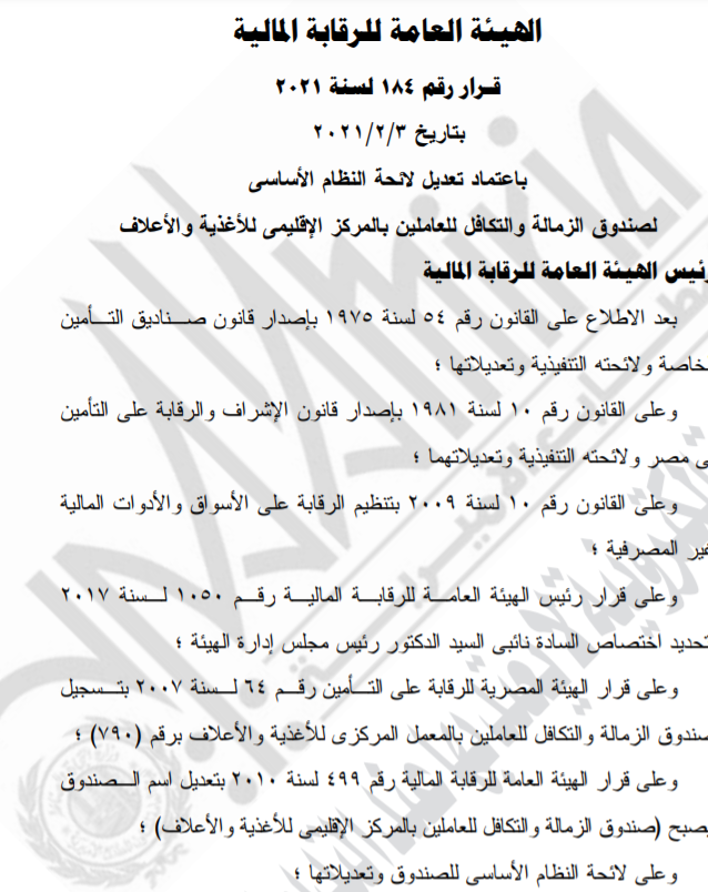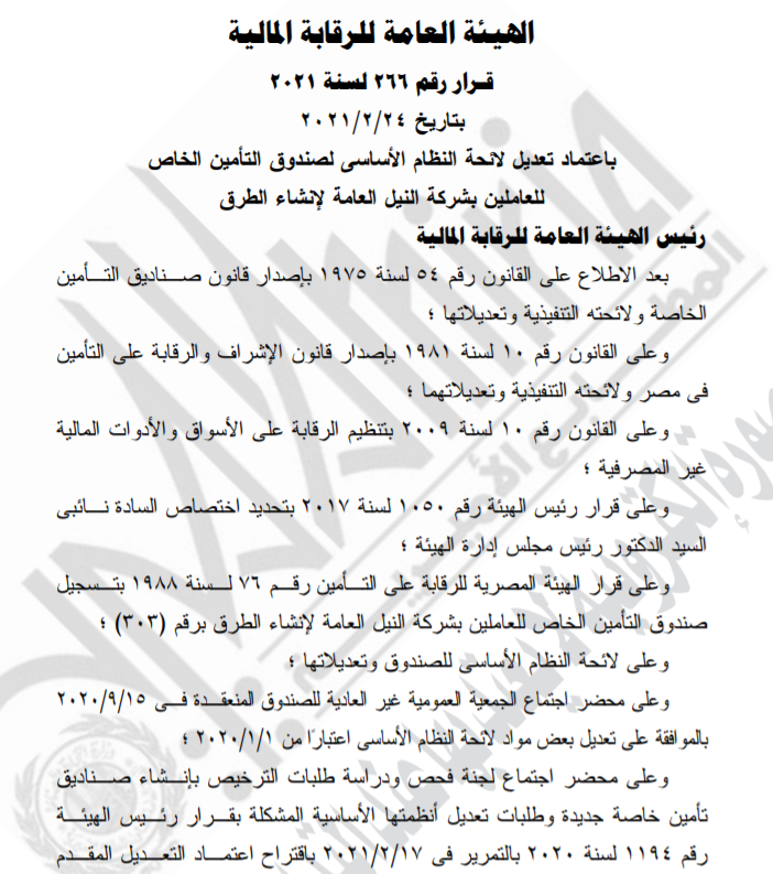 «الرقابة المالية» تعتمد تعديل النظام الأساسي لصندوق التأمين الخاص بالعاملين بشركة النيل لإنشاء الطرق بواسطة إسلام عبد الحميد 27 مايو 2021 | 2:33 م كتب إسلام عبد الحميد 27 مايو 2021 | 2:33 م النشر FacebookTwitterPinterestLinkedinWhatsappTelegramEmail 48 أصدر المستشار رضا عبد المعطى نائب رئيس الهيئة العامة للرقابة المالية، قرارين رقمي 266 لسنة 2021، باعتماد تعديل لائحة النظام الأساسي لصندوق التأمين الخاص للعاملين بشركة النيل العامة لإنشاء الطرق. كما أصدر عبدالمعطي القرار رقم 148 لسنة 2021 بتعديل لائحة النظام الأساسي لصندوق الزمالة والتكافل للعاملين بالمركز الإقليمي للأغذية والأعلاف. إقرأ أيضاً شركات التأمين تسدد تعويضات تتخطى 18 مليار جنيه خلال الربع الثالث من العام 30.9 مليار جنيه حصيلة أقساط شركات التأمين خلال الربع الثالث من 2025 اتحاد التأمين: الوثائق الادخارية وسيلة عملية لمعالجة التحديات المالية للأسرة المصرية وتم نشر القرارين بالجريدة الرسمية في عددها رقم 117 الصادر اليوم الخميس. 3.05 مليار جنيه استثمارات معتمدة لصناديق التأمين الخاصة خلال 3 أشهر وكانت قد اعتمدت الهيئة العامة للرقابة المالية استثمارات جديدة بقيمة تصل إلى نحو 3.055 مليار جنيه لصالح صناديق التأمين الخاصة خلال الربع الأول من عام 2021، مقابل 2.595 مليار جنيه خلال الفترة ذاتها من عام 2020. وأوضحت الهيئة في تقريرها عن الأداء الشهري للأنشطة المالية غير المصرفية، أن قيمة النمو في استثمارات صناديق التأمين الخاصة الجديدة المعتمدة من الهيئة بلغت حوالي 460 مليون جنيه خلال شهري يناير وفبراير 2021 مقارنة بما تم اعتماده خلال الفترة المناظرة، بمعدل نمو 17.7%. وأضافت أن هذه الاستثمارات تتمثل في شهادات استثمار البنك الأهلي المصري أ وب؛ بجانب الودائع البنكية ووثائق صناديق الاستثمار، بالإضافة إلى أدوات الدين العام من أذون خزانة وسندات حكومية. وبلغت حجم الاستثمارات الجديدة المعتمدة لصناديق التأمين الخاصة خلال مارس الماضي نحو 1.02 مليار جنيه، مقابل 430 مليون جنيه استثمارات معتمدة خلال الشهر ذاته من عام 2020، بمعدل نمو 137.2%. وكان قد أعلن رضا عبدالمعطي، في تصريحات صحفية سابقة، أن الاستراتيجية القومية للخدمات المالية غير المصرفية المعدة من قبل الهيئة العامة للرقابة المالية تهدف أن يصل حجم صناديق التأمين الخاصة إلى 100 مليار جنيه مقارنة بمبلغ 61 مليار جنيه خلال العام الماضي. وترتبط صناديق التأمين الخاصة بقطاع التأمين، والتي تُعد شكل آخر لأدوات الادخار، وهي عبارة عن أنظمة تأمينية يتم تسجيلها بحيث تصبح منفصلة عن الجهة المنشأة لها، ويتم تكوينها لأغراض منح مزايا لمجموعه من العاملين بالجهة المنشأة، وتكون في شكل مزايا تأمينيه أو معاشات إضافية أو مزايا اجتماعية أو رعاية صحية. وينظم قانون صناديق التأمين الخاصة رقم 54 لسنة 1975 ولائحته التنفيذية نشاط صناديق التامين الخاصة في مصر، وفى إطار تطوير القواعد المنظمة لصناديق التأمين الخاصة تم تعديل اللائحة التنفيذية للقانون عام 2015. اللينك المختصرللمقال: https://amwalalghad.com/13rw النيل لإنشاء الطرقشركات التأمينصندوق التأمين
