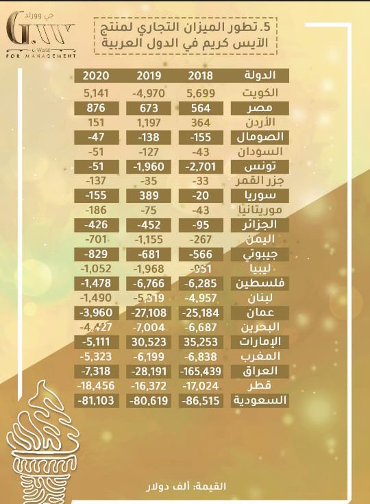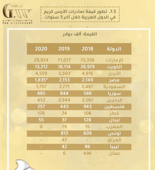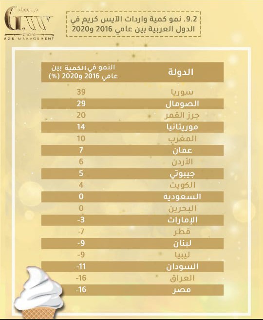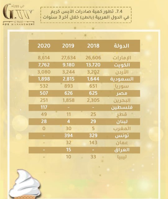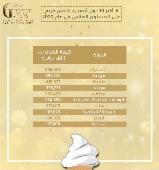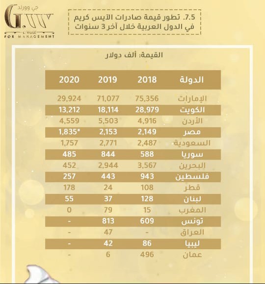 65.8 مليار دولار قيمة سوق الآيس كريم عالميا.. وتوقعات بنمو 4% سنويا حتى 2027 بواسطة سناء علام 25 يوليو 2021 | 1:09 م كتب سناء علام 25 يوليو 2021 | 1:09 م النشر FacebookTwitterPinterestLinkedinWhatsappTelegramEmail 701 تراجعت قيمة سوق الآيس كريم على مستوى العالم خلال العام الماضي نتيجة تفشي وباء فيروس كورونا المستجد، لتصل لنحو 65.8 مليار دولار في مقابل 70.9 مليار دولار خلال 2019، مع توقعات بنمو السوق لنحو 92 مليار دولار خلال 2027. وأوضح تقرير «جي وورلد للإدارة»، بمناسبة الاحتفال بيوم الآيس كريم، أن سوق صناعة الآيس كريم شهد تطورا هائلا على مدى الأعوام الماضية باستثناء 2020، مع توقعات بأن يعاود السوق الارتفاع مرة أخرى بمعدل نمو سنوي مركب قدره 4.01% في عام 2027. إقرأ أيضاً «تتراباك»: توقعات بتجاوز سوق الآيس كريم العالمي 75 مليار دولار بحلول 2024 وذكر التقرير الذي حصل أموال الغد على نسخة منه، أن كبرى الشركات العالمية العاملة في مجالات الأغذية دخلت في تلك الصناعة وأصبحت تسيطر على كبرى العلامات التجارية التي تنشط في ذلك القطاع. وتتمثل أكبر 10 دول استهلاكا للآيس كريم عام 2018 في ( إيرلندا، والدنمارك، الجبل الاسود ” مونتينيجرو”، مولدوفا، جزر البهاما، مالطا، جزر سيشل، انتيغوا وباربودا، ماكاو). البحرين أكبر الدول العربية استهلاكا للآيس كريم ونوه التقرير أن أكبر الدول العربية استهلاكا للأيس كريم في 2017، تمثلت في البحرين بنحو 7 كجم لـ 1000 فرد، قطر بنحو 5 كجم، الإمارات بنحو 5 كجم، سوريا بنحو 4.8 كجم، الأردن بنحو 3.4 كجم، تونس بنحو 3.3 كجم، الكويت بنحو 0.8 كجم، السعودية بنحو 0.7 كجم، مصر بنحو 0.6 كجم. وفيما يتعلق بأهم الدول المصدرة للآيس كريم خلال 2020، فتصدرها ألمانيا بنحو 596.088 مليون دولار، تليها فرنسا بقيمة 552.749 مليون دولار، ثم بلجيكا بنحو 415.577 مليون دولار، وهولندا بقيمة 338.771 مليون دولار، وإيطاليا بنحو 269.42 مليون دولار. وذكر التقرير أن هناك نموا بصادرات الدول العربية من الآيس كريم بين عامي 2016 و 2020، حيث شهدت صادرات البحرين منه نموا بنسبة 55% في القيمة و 112% في الكمية، تليها فلسطين بنسبة 10% في القيمة و 5% بالكمية، ثم الأردن بنسبة 7% بالقيمة و12% بالكمية. 2 % تراجعا بصادرات مصر من الآيس كريم وشهدت صادرات مصر من الآيس كريم تراجعا بين عامي 2016 و 2020، بنسبة 2% بالقيمة و 19% بالكمية، والسعودية بنسبة 8% بالقيمة بينما نمت الكمية بنسبة 11%، وسوريا بنسبة 3% بالقيمة و 4% بالكمية. وتراجع حجم صادرات مصر من الآيس كريم ليبلغ 507 طن خلال 2020 في مقابل 626 طن خلال 2019، وكذلك الإمارات ليبلغ 8614 طن في مقابل 27.634 ألف طن، والكويت لنحو 7762 طن في مقابل 9180طن، والأردن لنحو 3080 طن في مقابل 3244 طن، والسعودية لنحو 1898 طن في مقابل 2815 طن. وتقدر قيمة صادرات مصر من الآيس كريم خلال العام الماضي نحو 1.835 مليون دولار في مقابل 2.153 مليون دولار خلال 2019، وبلغت قيمة صادرات الإمارات منه نحو 29.924 مليون دولار في مقابل 71.077 مليون دولار، والكويت نحو 13.212 مليون دولار في مقابل 18.114 مليون دولار، والأردن نحو 4.559 مليون دولار في مقابل 5.503 مليون دولار. ألمانيا أكبر الدول المستوردة للآيس كريم وتعد ألمانيا أكبر الدول المستوردة للآيس كريم خلال 2020 بقيمة 421.627 مليون دولار، تليها المملكة المتحدة بنحو 419.448 مليون دولار، ثم فرنسا بنحو 278.748مليون دولار، وهولندا بقيمة 250.631 مليون دولار، وبلجيكا بنحو 175.901 مليون دولار. وأشار التقرير إلى نمو قيمة واردات الآيس كريم للدول العربية بين عامي 2016 و 2020، حيث جاءت تونس على رأس الدول التي شهدت نموا بنسبة 139%، تليها سوريا بنسبة 44%، ثم جزر القمر بنسبة 35%، و موريتانيا بنسبة 32%، وعمان بنسبة 15%. وتراجعت قيمة واردات مصر من الآيس كريم بنسبة 13% بين عامي 2016 و 2020، وكذلك قيمة واردات لبنان منه بنسبة 17%، والسودان بنسبة 25%، والسعودية بنسبة 4%. وارتفع حجم واردات الآيس كريم لسوريا بين عامي 2016 و 2020 بنسبة 39%، وللصومال بنسبة 29%، ولجزر القمر بنسبة 20%، ولموريتانيا بنسبة 14%، وللمغرب بنسبة 10%. وانخفض حجم واردات الآيس كريم لمصر بين عامي 2016 و 2020 بنسبة 16%