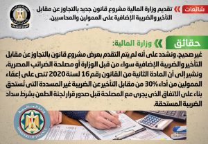 المالية تنفي تقديم مشروع قانون للتجاوز عن مقابل التأخير والضريبة الإضافية على الممولين والمحاسبين بواسطة محمود شعبان 12 أكتوبر 2021 | 1:28 م كتب محمود شعبان 12 أكتوبر 2021 | 1:28 م وزارة المالية النشر FacebookTwitterPinterestLinkedinWhatsappTelegramEmail 15 تداولت بعض المواقع الإلكترونية وصفحات التواصل الاجتماعي أنباء بشأن تقديم وزارة المالية مشروع قانون جديد بالتجاوز عن مقابل التأخير والضريبة الإضافية على الممولين والمحاسبين. وقد قام المركز الإعلامي لمجلس الوزراء بالتواصل مع وزارة المالية، والتي نفت تلك الأنباء، مُؤكدةً أنه لا صحة لتقديم الوزارة أي مشروع قانون جديد بالتجاوز عن مقابل التأخير والضريبة الإضافية على الممولين والمحاسبين، مُشددةً على أنه لم يتم التقدم بعرض مشروع قانون بالتجاوز عن مقابل التأخير والضريبة الإضافية سواء من قبل الوزارة أو مصلحة الضرائب المصرية. إقرأ أيضاً مجلس الوزراء يحسم الجدل حول الجنيهات الذهبية المغشوشة مجلس الوزراء: طرح مطار «الغردقة» أمام القطاع الخاص وعدم المساس بالأصول الحكومة تعيد تخصيص 240 فدانًا في قنا لصالح مصنع النهضة للأسمنت أشارة إلى أن المادة الثانية من القانون رقم 16 لسنة 2020 تنص على إعفاء الممولين من أداء 30% من مقابل التأخير عن الضريبة غير المسددة التي تُستحق بناء على الاتفاق الذي يجرى مع المصلحة قبل صدور قرار لجنة الطعن بشرط سداد الضريبة المستحقة. ونناشد وسائل الإعلام المختلفة ومرتادي مواقع التواصل الاجتماعي ضرورة توخي الدقة قبل نشر مثل هذه الشائعات، وفي حالة وجود أي استفسارات بهذا الشأن يمكن الرجوع إلى الموقع الإلكتروني للوزارة (mof.gov.eg)، وللإبلاغ عن أي شائعات أو معلومات مغلوطة يرجى الإرسال على أرقام الواتس آب التابعة للمركز الإعلامي لمجلس الوزراء (01155508688 -01155508851) على مدى 24 ساعة طوال أيام الأسبوع، أو عبر البريد الإلكتروني (rumors@idsc.net.eg). اللينك المختصرللمقال: https://amwalalghad.com/jza6 مجلس الوزراءوزارة المالية
