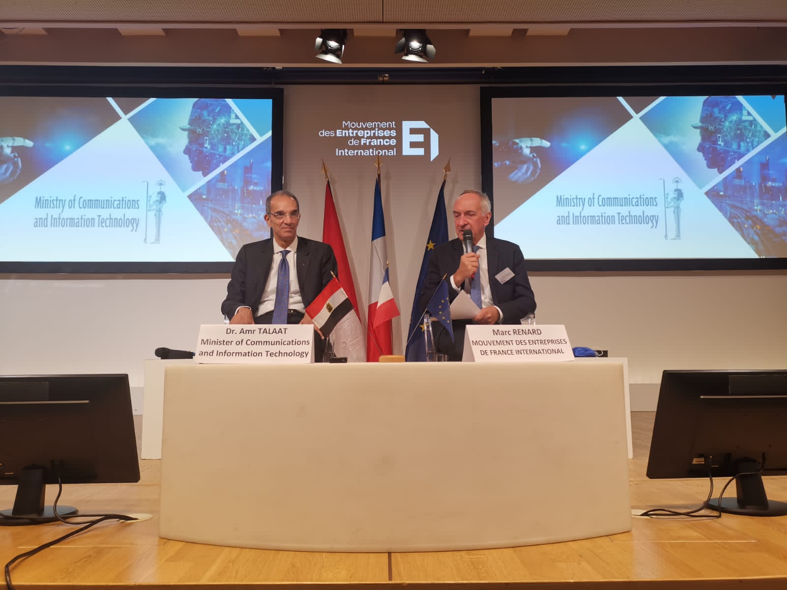 عمرو طلعت يستعرض الفرص الاستثمارية بقطاع الاتصالات أمام مجلس أرباب الأعمال الفرنسى بواسطة أموال الغد 25 أكتوبر 2021 | 6:27 م كتب أموال الغد 25 أكتوبر 2021 | 6:27 م النشر FacebookTwitterPinterestLinkedinWhatsappTelegramEmail 10 ألقى الدكتورعمرو طلعت وزير الاتصالات وتكنولوجيا المعلومات كلمة أمام رؤساء وممثلى مجموعة من كبرى الشركات الفرنسية بمقر مجلس أرباب الأعمال الفرنسي “MEDEF” ، استعرض خلالها الفرص الاستثمارية المتاحة بقطاع الاتصالات وتكنولوجيا المعلومات فى ضوء تنفيذ استراتيجية مصر الرقمية، وكذلك مشروعات التعاون الحالية والمستقبلية بين مصر وفرنسا فى مجال الاتصالات وتكنولوجيا المعلومات. وذلك فى إطار زيارة الدكتور مصطفى مدبولى رئيس مجلس الوزراء والوفد المرافق له للعاصمة الفرنسية باريس. إقرأ أيضاً رئيس الوزراء: سرعات الإنترنت تضاعفت نحو 19 مرة منذ عام 2019 حتى الآن رئيس الوزراء يشهد توقيع أكبر صفقة للترددات في تاريخ قطاع الاتصالات بقيمة 3.5 مليار دولار أيمن السعدني: الاتصالات أقل القطاعات تحريكًا للأسعار.. وتأثير زيادة تكاليف التشغيل قيد الدراسة وحضر اللقاء؛ مارك رينارد رئيس قطاع الديجيتال فى مجلس أرباب الأعمال الفرنسي”MEDEF” ، ومسئولى عدد كبير من الشركات الفرنسية ومنها شركات، شنايدر ، وتاليس، و اتوس. وأكد الدكتورعمرو طلعت على وجود تعاون وثيق وشراكات بناءة بين البلدين فى مجال الاتصالات وتكنولوجيا المعلومات، وأن هناك أفاقا واسعة لتطوير هذا التعاون لاسيما فى مجال الذكاء الاصطناعي، وبناء القدرات الرقمية، والبحوث والتطوير، ودعم الابتكار التكنولوجى وريادة الأعمال؛ موضحا المزايا التنافسية لقطاع الاتصالات وتكنولوجيا المعلومات المصرى والتطور الذى تشهده مصر فى هذه الصناعة؛ مشيرا إلى أن مصر تشغل المركز الأول فى جذب الاستثمارات فى الشركات الناشئة فى الشرق الأوسط وشمال أفريقيا، كما شغلت الـمركز الأول على مستوى افريقيا والشرق الأوسط والخامس عشر عالمياً لأفضل مواقع الخدمات العالمية والتعهيد، وكذلك جاءت مصر ضمن أسرع 10 دول نموًا فى الشمول الرقمى فى 2020. وأضاف الدكتور/ عمرو طلعت أن مصر تشهد طفرة غير مسبوقة فى التحول الرقمى فى اطار رؤية الدولة لتطويع التكنولوجيات الرقمية من أجل تحسين جودة الخدمات المقدمة للمواطنين؛ حيث تم حتى الآن اطلاق 90 خدمة حكومية على منصة مصر الرقمية من مستهدف 100 خدمة بنهاية العام الحالى، كما يتم تنفيذ خطة لتطوير البريد المصرى ليصبح منفذا لتقديم خدمات مصر الرقمية وخدمات الشمول المالى؛ مشيرا إلى أن الدولة تعمل على تبنى تكنولوجيا الذكاء الاصطناعى لإيجاد حلول مبتكرة للتحديات التى يواجهها المجتمع المصرى؛ منوها إلى أنه تم عقد العديد من اتفاقيات التعاون مع شركات فرنسية لتنفيذ مشروعات فى البحوث التطبيقية باستخدام تكنولوجيات الذكاء الاصطناعي. وأوضح الدكتور عمرو طلعت أن وزارة الاتصالات وتكنولوجيا المعلومات قامت بمضاعفة الاستثمار فى برامج التدريب التقنى 22 مرة خلال ثلاث سنوات لترتفع من 50 مليون جنيه بمستهدف تدريب 4 الاف شاب الى 1.3 مليار جنيه بمستهدف تدريب 200 الف شاب فى مختلف علوم الاتصالات وتكنولوجيا المعلومات؛ مؤكدا على أن استراتيجية بناء القدرات الرقمية يتم تنفيذها وفقا لنهج هرمى يبدأ بتنمية المهارات الأساسية فى المجالات التكنولوجية ثم اتاحة فرص للتعليم المتخصص من خلال مدارس تكنولوجية تطبيقية ومعاهد تكنولوجية، وصولا الى العمل على تأسيس قاعدة عريضة من خبراء المعلوماتية من خلال جامعة مصر للمعلوماتية والتى تعد أول جامعة فى أفريقيا والشرق الأوسط متخصصة فى الاتصالات وتكنولوجيا المعلومات والمجالات المرتبطة بها، ثم برامج لصقل مهارات الخريجين، انتهاءا بمنح الماجستير المهنى فى احدى التخصصات التكنولوجية بالشراكة مع كبرى الجامعات العالمية المرموقة من خلال مبادرة بناة مصر الرقمية. وأكد الدكتورعمرو طلعت على اهتمام الدولة بتنمية ريادة الأعمال ودعم الابتكار التكنولوجي؛ حيث تم ا