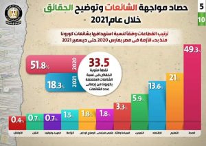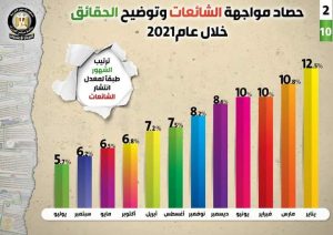 بالإنفوجراف.. «مجلس الوزراء» يرصد تقرير حصاد مواجهة الشائعات وتوضيح الحقائق خلال 2021 بواسطة مروة حمدان 29 يناير 2022 | 10:43 ص كتب مروة حمدان 29 يناير 2022 | 10:43 ص الدكتور مصطفى مدبولى، رئيس الوزراء النشر FacebookTwitterPinterestLinkedinWhatsappTelegramEmail 42 في الوقت الذي تولي فيه الدولة المصرية أهمية قصوى لقضية الوعي بمفهومها الشامل، تستمر جهود المركز الإعلامي لمجلس الوزراء للتصدي للشائعات ونشر الحقائق بكل تجرد وحياد عبر آليات فعالة ومتعددة، إيماناً بحق المواطن في الحصول على المعلومة الصحيحة والموثقة من مصادرها، وإدراكاً لأهمية رفع الوعي في المجتمع باعتباره أحد عوامل استقراره وتقدمه ومواجهة الأفكار الهدامة والمتربصين بالدولة ودحض الشائعات، هذا بالإضافة إلى قيام المركز بوضع الخطط الكفيلة بتطوير آليات العمل والرصد بما يتواكب مع كل المتغيرات والمعطيات، فضلاً عن القيام بتحليل وقياس عميق لما يتم رصده من شائعات بشكل علمي ومنهجي. وفي إطار سلسلة تقارير حصاد قطاعات الدولة في عام 2021، نشر المركز الإعلامي لمجلس الوزراء تقريراً تضمن إنفوجرافات تسلط الضوء على حصاد مواجهة الشائعات وتوضيح الحقائق. إقرأ أيضاً مجلس الوزراء يوضح حقيقة منح طلاب المدارس الحكومية إجازة رسمية يومي الأربعاء والخميس المقبلين الحكومة تنشر تقريرا حول جهود تحسين خدمات المحليات للمواطنين بالمحافظات مجلس الوزراء ينفي قطع النخيل والأشجار النادرة بحديقة الأورمان وجاء في التقرير ترتيب السنوات طبقاً لمعدل انتشار الشائعات خلال الفترة من 2014 لـ 2021، موضحاً أن عام 2021 جاء في الصدارة بنسبة تبلغ 23.5%، وذلك مقارنة بـ 22.9% عام 2020، و20.1% عام 2019، و12.9% عام 2018، و9.3% عام 2017، و6.5% عام 2016، و3.1% عام 2015، و1.7% عام 2014، علماً بأن هذا توزيع نسبي لإجمالي الفترة المذكورة. وأشار التقرير إلى ترتيب الشهور طبقاً لمعدل انتشار الشائعات على مدار عام 2021، حيث جاء شهر يناير في المركز الأول بنسبة 12.5%، تلاه شهر مارس بنسبة 10.8%، ثم كل من فبراير ويونيو بنسبة 10%، وديسمبر 8.6%، ونوفمبر 8.2%، وأغسطس 7.5%، وأبريل 7.2%، وأكتوبر 6.8%، ومايو 6.5%، وسبتمبر 6.2%، ويوليو 5.7%. هذا وقد استعرض التقرير ترتيب القطاعات طبقاً لنسبة استهدافها بالشائعات خلال عام 2021، حيث جاء قطاع التعليم في الصدارة بنسبة 25,8%، تلاه قطاع الاقتصاد بنسبة 22,6%، ثم الصحة بنسبة 12,2%، والتموين بنسبة 10%، والزراعة بنسبة 5,4%، والكهرباء والوقود بنسبة 5%، والتضامن الاجتماعي بنسبة 4,7%، ثم كل من الإسكان والسياحة والآثار بنسبة 4,3%، والإصلاح الإداري بنسبة 3,6%، فيما استحوذت القطاعات الأخرى على 2,1% من إجمالي الشائعات. وأظهر التقرير القطاع الأكثر استهدافاً بالشائعات طبقاً للشهور، حيث تصدر قطاع الاقتصاد شهر يناير بنسبة 22.9%، وفبراير بـ 35.7%، وأغسطس بـ 38.1%، وسبتمبر بـ 41.2%، بينما احتل قطاع التعليم الصدارة بنسبة 26.7% في مارس، و25% في يونيو، و42.1% في أكتوبر، و54.2% في ديسمبر. يأتي هذا بينما تصدر قطاع الصحة القطاعات الأكثر استهدافاً بالشائعات في شهر مايو بنسبة 27.8%، ونوفمبر بـ 17.4%، بينما احتل قطاع التموين الصدارة بنسبة 25% في شهري أبريل ويوليو. وعلى صعيد ترتيب القطاعات وفقاً لنسبة استهدافها بشائعات كورونا منذ بدء الأزمة في مصر بمارس 2020 وحتى ديسمبر 2021، كشف التقرير عن حدوث انخفاض في نسبة الشائعات المتعلقة بكورونا بمقدار 33.5 نقطة مئوية من إجمالي عدد الشائعات، حيث سجلت 18.3% عام 2021، مقارنة بـ 51.8% عام 2020. وفي هذا السياق، أظهر التقرير أن شائعات كورونا المتعلقة بقطاع الصحة جاءت في المركز الأول بنسبة 49.3%، ثم قطاع التعليم بـ 21%، والاقتصاد بـ 13.6%، والتموين بـ 5.9%، والسياحة والآثار بـ 3.3%، وكل من التضامن الاجتماعي، والإصلاح الإداري بـ 1.8%، والزراعة بـ 1.5%، وكل من الكهرباء والوقود والنقل بـ 0.7%، والأوقاف بـ 0.4%. واستعرض التقرير معدل انتشار شائعات كورونا وفقاً للشهور، وذلك منذ بدء الأزمة في مصر خلال الفترة من مارس 2020 حتى ديسمبر 2021، لافتاً إلى أن الإدارة الناجحة للأزمة ساهمت في انخفاض مع