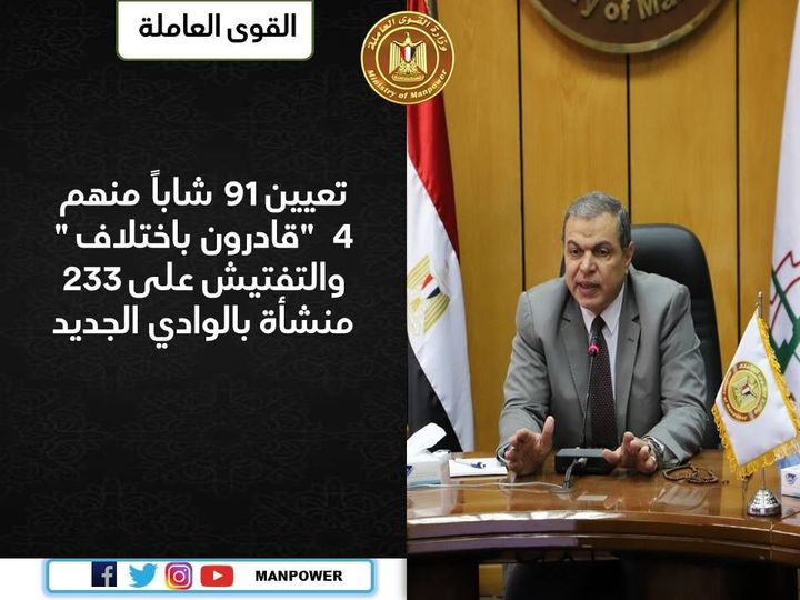 «القوى العاملة»: تعيين 91 شاباً منهم 4 قادرون باختلاف بمحافظة الوادي الجديد بواسطة إسراء محمد 14 فبراير 2022 | 10:33 ص كتب إسراء محمد 14 فبراير 2022 | 10:33 ص النشر FacebookTwitterPinterestLinkedinWhatsappTelegramEmail 16 أعلن محمد سعفان، وزير القوى العاملة، قيام مديرية القوي العاملة بمحافظة الوادي الجديد بتعيين 91 شابا، منهم 4 “قادرون باختلاف” بمنشآت القطاع الخاص والاستثماري ، من خلال شهادات القيد المرتدة ” كعب العمل”، بمكاتب التشغيل التابعة للمديرية ، فضلا عن تسجيل 121 من راغبى العمل، وتوفير 235 فرص عمل . وأشار الوزير إلي أن المديرية قامت باستخراج 104 شهادات قياس مستوى المهارة ، ورخصة مزاولة المهنة ، أما في مجال علاقات العمل، فقد تلقت 33 شكوى عمالية ، تم تسوية شكوى منها ودياً ، وإحالة شكوى للقضاء ، وحفظ 3 شكاوى ، و28 شكوى ما زالت تحت البحث والدراسة. إقرأ أيضاً البيئة: إطلاق المرحلة الثانية من البرامج التدريبية للعمالة غير المنتظمة بمنظومة إدارة المخلفات وزيرة البيئة: إطلاق أول برنامج تدريبى لتقنين أوضاع العمالة غير المنتظمة بمنظومة إدارة المخلفات مؤتمر العمل العربي يعلن مصر عضوًا أصيلاً في مجلس إدارة منظمة العمل العربية ولفت الوزير إلى أنه فى مجال رعاية العمالة غير المنتظمة إجتماعياً وصحياً قامت المديرية بصرف منح لتلك الفئة بلغت 71 ألفاً و 621 جنيها لـ 36 عاملاً من المسجلين ، وتسليم شهادة أمان لـ 100 عامل من المسجلين بقاعدة بيانات المديرية. وقال أحمد حسين طليب مدير المديرية – في تقريره للوزير عن ما تم إنجازه خلال يناير الماضي- إن المديرية قامت في مجال تفتيش العمل ، بالتفتيش على 233 منشأة ، “دوري وحملات” ، وأسفر عن تحرير 3 محاضر لمنشآت مخالفة ، وعقد ندوة توعية للعاملين حضرها 12 عاملا ، وفى مجال السلامة والصحة المهنية قامت بالتفتيش على 45 منشأة ، وإعادة التفتيش على 76 منشأة ، أسفر عن تحرير 16 محضر، والقيام بحملة تفتيشية، وعمل 11 قياس ميدانية ، وبحث شكوى . أما في مجال التدريب المهني فقد قامت المديرية ، بالانتهاء من دورة تدريبية على مهنة إصلاح وصيانة التليفون المحمول لـ 15 متدرباً ومتدربة بمركز التدريب بالتنسيق مع إدارة الصناعات الحرفية بالمحافظة، وتنفيذ دورة تدريبية لـ 15 متدرباً ومتدربة من ذوى القدرات الخاصة على مهنة صيانة المحمول بمركز حسن حلمي ، فضلاً عن الإنتهاء من دورة على مهنة التفصيل والحياكة ، لـ 8 متدربات بقرية الجزائر ضمن مبادرة مهنتك مستقبلك. وفي مجال التفتيش على المنشآت للتأكد تطبيق كافة الإجراءات الاحترازية للوقاية من انتشار فيروس كورونا المستجد (كوفيد – 19) ، تم متابعة 140 منشأة من المنشآت ذات الكثافة العمالية من خلال مكاتب السلامة والصحة المهنية التفتيش العمالي. اللينك المختصرللمقال: https://amwalalghad.com/86v8 محمد سعفان وزير القوى العاملةمديرية القوى العاملة بمحافظة الوادي الجديدوزارة القوى العاملة