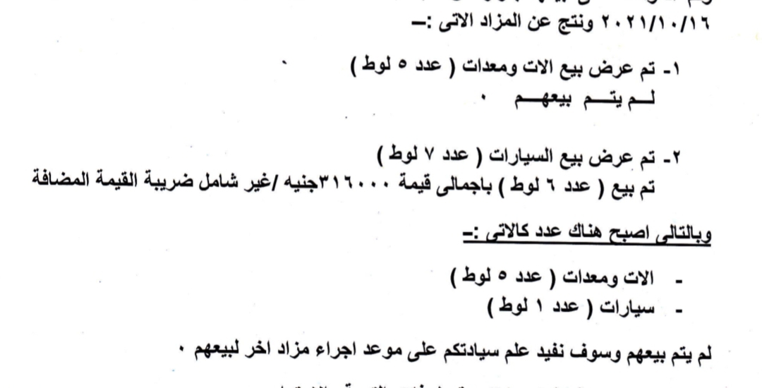 «فوديكو» تبيع معدات مستهلكة بقيمة 316 ألف جنيه في جلسة مزاد بالأمس بواسطة هبة خالد 21 مارس 2022 | 10:36 ص كتب هبة خالد 21 مارس 2022 | 10:36 ص أسعار المواد الغذائية النشر FacebookTwitterPinterestLinkedinWhatsappTelegramEmail 38 أعلنت شركة الإسماعيلية الوطنية للصناعات الغذائية (فوديكو)، عن قيامها بعقد مزاد علني (جلسة ثانية) أمس الأحد. وأوضحت خلال بيان مرسل للبورصة المصرية، اليوم، أن المزاد المنعقد جاء لبيع معدات وآلات المصانع المستهلكة وكذلك بيع السيارات المستهلكة. إقرأ أيضاً تحفيز البورصة والإنتاج.. وزير المالية يكشف تفاصيل حزمة التسهيلات الضريبية الجديدة البورصة المصرية.. «EGX30» يغلق تعاملات الأربعاء مرتفعا 0.76% البورصة المصرية تواصل الصعود في منتصف تعاملات الأربعاء وتابعت أنه تمت الموافقة على بيعها بقرار من الجمعية العامة الغير عادية للشركة المنعقدة بتاريخ 16 أكتوبر 2021. وأشارت إلى أنه تم بيع (6) لوط من إجمالي 7 من معدات السيارات المستهلكة بقيمة 316 ألف جنيه. وعرضت نتائج المزاد على النحو التالي: سبق واقترح مجلس إدارة شركة الإسماعيلية الوطنية للصناعات الغذائية فوديكو، ترحيل الأرباح المحققة خلال العام الماضي. وأوضحت الشركة في بيان للبورصة، أن مجلس الإدارة أوصى بترحيل الأرباح المحققة عن العام الماضي، والتي بلغت 9.5 مليون جنيه للعام القادم، والعرض على الجمعية العامة العادية خلال جلسة الانعقاد المقبلة. وكشفت القوائم المالية لشركة الإسماعيلية الوطنية للصناعات الغذائية (فوديكو)، خلال العام الماضي، تراجع أرباح الشركة بنسبة 17.9%، على أساس سنوي. وأوضحت الشركة في بيان للبورصة اليوم، أنها سجلت صافي ربح بلغ 9.55 مليون جنيه خلال 2021، مقابل أرباح بلغت 11.64 مليون جنيه خلال 2020. وارتفعت مبيعات الشركة خلال العام الماضي لتسجل 67.27 مليون جنيه بنهاية ديسمبر، مقابل 47.51 مليون جنيه خلال 2020. وحققت شركة الوطنية للإسكان للنقابات المهنية، خلال عام 2020، خسائر بلغت 34.93 مليون جنيه خلال الفترة من يناير إلى ديسمبر الماضي، مقابل أرباح بلغت 807.22 ألف جنيه في الفترة المقارنة من 2019. ولم تحقق الشركة إيرادات في نشاطي الإسكان والتجاري خلال عام 2020، مقابل 48.8 مليون جنيه إيرادات لكل نشاط خلال 2019 قالت شركة الوطنية للإسكان للنقابات المهنية، إنه تم الانتهاء من كافة الإجراءات الخاصة بعملية بيع فندق ميريديان هليوبوليس، وإعداد عقد البيع والحصول على جمبيع الشيكات الخاصة بالقيمة البيعية للفندق بقيمة 605 ملايين جنيه. وأضافت الشركة في بيان صادر، أنه سيتم دفع القيمة البيعية كالآتي: مليون جنيه جدية حجز قبل التعاقد نقداً، و154.02 مليون جنيه نقداً، و449.98 مليون جنيه شيكات آجلة تمثل باقي القيمة المستحقة لبيع الفندق. كما تم الحصول على شيكات آجلة بقيمة 50.622 مليون جنيه، تمثل قيمة الفوائد المستحقة خلال فترة السماح. اللينك المختصرللمقال: https://amwalalghad.com/q2d6 أخبار البورصة المصريةالبورصة المصريةسهم فوديكوفوديكو