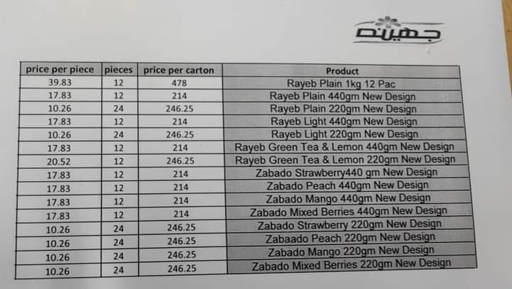 «جهينة» ترفع أسعار الزبادو والرايب بالسوق المحلية بداية من اليوم بواسطة إيناس شعبان 19 ديسمبر 2023 | 9:53 ص كتب إيناس شعبان 19 ديسمبر 2023 | 9:53 ص جهينة النشر FacebookTwitterPinterestLinkedinWhatsappTelegramEmail 153 قررت شركة جهينة للصناعات الغذائية، رفع أسعار عدد من المنتجات مرة أخرى اليوم الثلاثاء 19 ديسمبر 2023، عبر زيادة أسعار الزبادو واللبن الرايب وبحسب إخطار شركة جهينة للعملاء، أقرت الشركة زيادة سعر اللبن الرايب والزبادو صغير الحجم من 10 جنيهات إلي 11 جنيها، ورفعت الشركة أسعار الأحجام الكبيرة من 17 إلي 19 جنيها للمستهلك. إقرأ أيضاً عمومية «جهينة» تعدل نظامها الأساسي بعد قرار الرقابة المالية «جهينة» تتقدم بمستندات زيادة رأس المال إلى 1.2 مليار جنيه عبر توزيع أسهم مجانية «جهينة» تتجه لزيادة الأسعار خلال الفترة المقبلة ورفعت شركة جهينة، سعر اللبن الرايب 1 كيلو إلى نحو 40 جنيها للعبوة، و478 جنيها للكرتونة 12 عبوة. وكذلك رفعت سعر رايب 440 ملي إلى 214 جنيها للكرتونة و19 جنيها للعبوة، ونفس السعر والزيادة على الزبادو من نفس الحجم. واقرت جهينة زيادة على سعر زبادو 220 ملي جرام إلى 247 جنيها للكرتونة على 4 أصناف منها المانجو والفواكه الميكس والاناناس ليصل سعر العلبة الواحدة إلى 11 جنيها بحد أدنى. اللينك المختصرللمقال: https://amwalalghad.com/g808 أسعار الرايبأسعار الزباديجهينة للصناعات الغذائية