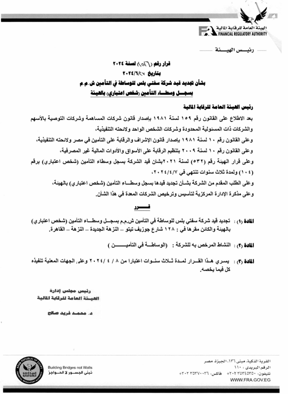تجديد قيد «سفتي بلس» بسجلات هيئة الرقابة المالية لشركات الوساطة التأمينية لمدة 3 سنوات بواسطة إسلام عبد الحميد 8 يوليو 2024 | 2:48 م كتب إسلام عبد الحميد 8 يوليو 2024 | 2:48 م النشر FacebookTwitterPinterestLinkedinWhatsappTelegramEmail 78 أصدر الدكتور محمد فريد، رئيس مجلس إدارة الهيئة العامة للرقابة المالية، قراراً بتجديد قيد شركة سفتي بلس للوساطة في التأمين بسجل وسطاء التأمين (شخص اعتباري) بالهيئة لمدة 3 سنوات. ووفقاً للقرار رقم 1516 لسنة 2024، تقرر تجديد قيد شركة “سفتي بلس” اعتباراً من 8 أبريل 2024، وعلى الجهات المعنية تنفيذه كل فيما يخصه. إقرأ أيضاً الرقابة lلمالية تقلص مهلة تقديم خطط استيفاء التزامات شركات التأمين إلى 3 أشهر الرقابة المالية تشترط دراسة جدوى وخطط خمسية لتعديل ترخيص شركات التأمين لمزاولة «متناهي الصغر» مهلة 6 أشهر لمكاتب تمثيل شركات التأمين و«الإعادة» الأجنبية لتوفيق أوضاعها للعمل بالسوق المصرية وجاء القرار بعد الاطلاع على القانون رقم 159 لسنة 1981 بإصدار قانون شركات المساهمة وشركات التوصية بالأسهم والشركات ذات المسئولية المحدودة وشركات الشخص الواحد ولائحته التنفيذية، وعلى القانون رقم 10 لسنة 1981 بإصدار قانون الإشراف والرقابة على التأمين في مصر ولائحته التنفيذية. اللينك المختصرللمقال: https://amwalalghad.com/g9tw الهيئة العامة للرقابة الماليةالوساطة في التأمينسفتي بلسشركات الوساطةشركات الوساطة التأمينيةهيئة الرقابة المالية
