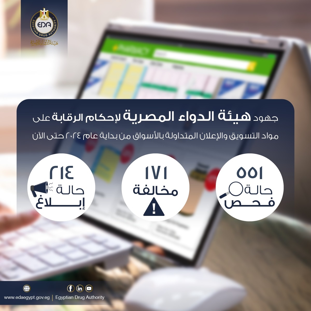 هيئة الدواء: إصدار 171 مخالفة بخصوص مواد التسويق والإعلان المتداولة بالسوق بواسطة اسلام فضل 25 أغسطس 2024 | 5:17 م كتب اسلام فضل 25 أغسطس 2024 | 5:17 م هيئة الدواء المصرية النشر FacebookTwitterPinterestLinkedinWhatsappTelegramEmail 106 أعلنت هيئة الدواء المصرية إصدار 171 مخالفة بخصوص مواد التسويق والإعلان المتداولة بسوق الدواء منذ بداية العام الجاري، وأنه تم استقبال 214 إبلاغ عن مواد تسويقية مخالفة أو غير ملائمة، وفحص 551 مادة تسويقية منشورة ومتداولة من خلال الصفحات والمواقع الإلكترونية بالسوق الدوائية. وأكدت هيئة الدواء المصرية على كافة المواطنين أهمية التواصل معها عبر سبل التواصل المختلفة المتاحة؛ للإبلاغ عن أي مواد تسويقية يعتقد أنها مخالفة، من خلال ملء طلب “الإبلاغ عن مواد دعائية غير ملائمة” والمتاح على موقع الهيئة الرسمي. إقرأ أيضاً رئيس هيئة الدواء يبحث مع «ترايمف جونهنغ» الصينية توطين صناعة الزجاج الصيدلاني باستثمارات 250 مليون دولار رئيس هيئة الدواء: لا ندرس تحريك أسعار الأدوية حاليًا.. والسوق يشهد استقرارًا في التوافر مدير عام GS1 Egypt: التتبع الدوائي بوابة مصر لجذب الاستثمارات وفتح الأسواق الخارجية وتداوم هيئة الدواء المصرية على تنفيذ عمليات الرصد والمتابعة الدورية، واستقبال الشكاوى والبلاغات المتعلقة بالمواد التسويقية المخالفة، واتخاذ الإجراءات الرقابية اللازمة من أجل ضمان وصول المعلومات الصحيحة والموثوقة والمحدثة والمحايدة وغير المُضَلِلَة للمواطنين بشكل مقبول ومناسب لجميع فئات المجتمع؛ حيث تقوم الهيئة بعمل رصد للصفحات الإلكترونية واستقبال الشكاوى والبلاغات المتعلقة بمخالفات المواد التسويقية، وذلك من خلال فريق صيادلة الشكاوى والتأكد من صحة هذه المخالفات، واتخاذ الإجراءات التصحيحية اللازمة تجاه الجهات الناشرة بإزالة المخالفات، والحصول على موافقة هيئة الدواء المصرية. وأوضحت الهيئة أنه يتم التعامل مع المعلومات والبيانات الواردة في هذا البلاغ بسرية تامة، حيث انها محمية بشكل كامل من قبل هيئة الدواء المصرية؛ بما في ذلك هوية مقدم البلاغ، ولن يتم الافصاح عنها تحت أي ظرف من الظروف، لا توجد أي قيود على مقدم البلاغ ولن يخضع لأي مسؤولية، كما يمكنه إضافة أي معلومات أو بيانات أخرى بناءً على رغبته في ذلك. اللينك المختصرللمقال: https://amwalalghad.com/tnaf هيئة الدواء المصرية