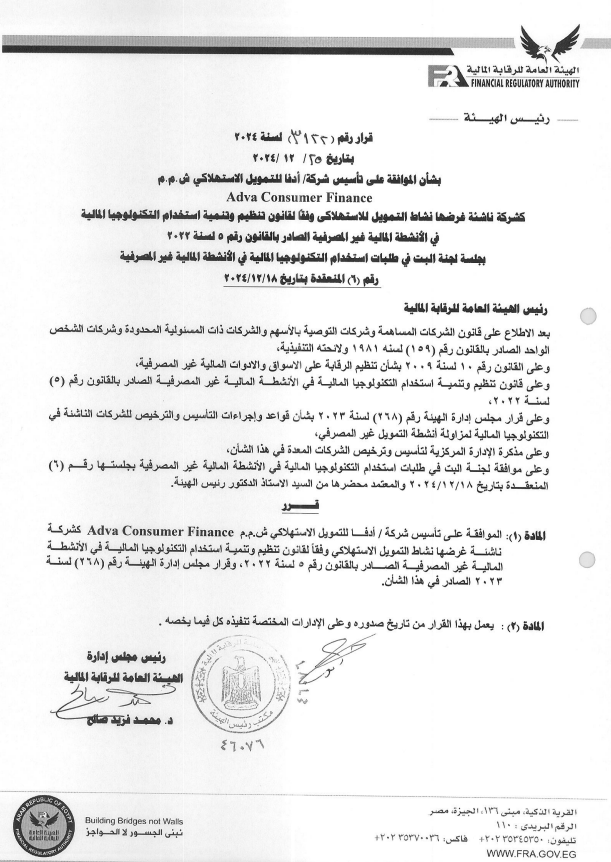 هيئة الرقابة المالية توافق على تأسيس أدفا للتمويل الاستهلاكي كشركة ناشئة باستخدام التكنولوجيا المالية بواسطة إسلام عبد الحميد 29 ديسمبر 2024 | 1:34 م كتب إسلام عبد الحميد 29 ديسمبر 2024 | 1:34 م مقر الهيئة العامة للرقابة المالية - أرشيفية النشر FacebookTwitterPinterestLinkedinWhatsappTelegramEmail 161 وافقت الهيئة العامة للرقابة المالية على تأسيس شركة أدفا للتمويل الاستهلاكي كشركة ناشئة غرضها نشاط التمويل الاستهلاكي. وأصدر الدكتور محمد فريد، رئيس مجلس إدارة الهيئة، قرارًا رقم 3122 لسنة 2024، بشأن الموافقة على تأسيس الشركة وفقًا لقانون تنظيم وتنمية استخدام التكنولوجيا المالية في الأنشطة المالية غير المصرفية الصادر بالقانون رقم 5 لسنة 2022، وقرار مجلس إدارة الهيئة رقم 268 لسنة 2023 الصادر في هذا الشأن. إقرأ أيضاً الرقابة المالية تصدر 4 قرارات لتعزيز تنظيم تمويل المشروعات الصغيرة ومتناهية الصغر البورصة المصرية تشارك في قمة التكنولوجيا والأعمال الدولية 2025 بجامعة بدر شركات التأمين تسدد تعويضات تتخطى 18 مليار جنيه خلال الربع الثالث من العام يذكر أنه قد أصدرت الهيئة العامة للرقابة المالية، قراراً رقم 184 لسنة 2024، خلال أكتوبر الماضي بشأن وقف قبول طلبات التأسيس والموافقة المبدئية على تأسيس الشركات الراغبة في الحصول على ترخيص من الهيئة بمزاولة نشاط التمويل الاستهلاكي بالطرق التقليدية. واستثنى القرار من أحكامه، أي شركة أو جهة راغبة في مزاولة نشاط التمويل الاستهلاكي باستخدام مجالات التكنولوجيا المالية، ووفقاً لقانون تنظيم وتنمية استخدام التكنولوجيا المالية في الأنشطة المالية غير الصرفية الصادر بالقانون رقم (5) لسنة 2022. وبحسب القرار، لا يسري قرار الإيقاف أيضاً على الشركات التي تأسست أو حصلت على موافقة مبدئية على التأسيس أو التي تقدمت بطلبات للحصول على أي منهما أو للحصول على الترخيص بمزاولة النشاط قبل العمل بهذا القرار، والذي بدأ منذ تاريخ 11 أكتوبر 2024. وأوضحت الهيئةحينئًذ أنه تم منح تراخيص لنحو 15 شركة خلال أخر عامين بنشاط التمويل الاستهلاكي كما أن هناك نحو 4 طلبات قيد الدراسة من إجمالي 30 شركة حاصلة على الترخيص. اللينك المختصرللمقال: https://amwalalghad.com/7t1m أدفا للتمويل الاستهلاكيالتكنولوجيا الماليةالتمويل الاستهلاكينشاط التمويل الاستهلاكيهيئة الرقابة المالية