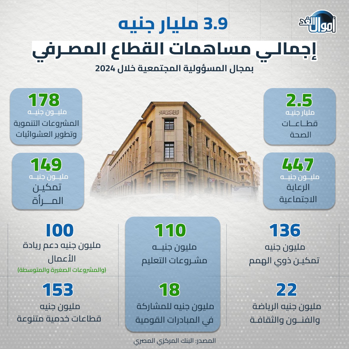 إنفوجراف.. 3.9 مليار جنيه مساهمات القطاع المصرفي لدعم المشروعات المجتمعية بواسطة مصطفى محمود 16 أبريل 2025 | 4:30 م كتب مصطفى محمود 16 أبريل 2025 | 4:30 م النشر FacebookTwitterPinterestLinkedinWhatsappTelegramEmail 86 بلغت إجمالي مساهمات القطاع المصرفي في المشروعات المجتمعية خلال 2024، نحو 3.9 مليار جنيه في قطاعات الصحة والرعاية الاجتماعية والمشروعات التنموية وتطوير العشوائيات وتمكين المرأة وذوي الهمم والتعليم، والعديد من القطاعات الخدمية ذات الأولوية للنهوض بالمجتمع، وذلك بحسب بيانات البنك المركزي المصري. إقرأ أيضاً رئيس الوزراء: توجيهات رئاسية بإطلاق حزمة متكاملة من التيسيرات لقطاعات الدولة رئيس الوزراء: تنسيق مستمر مع البنك المركزي للحفاظ على المسار النزولي للتضخم البنك المركزي يقبل سيولة بقيمة 103.3 مليار جنيه في عطاء السوق المفتوحة اللينك المختصرللمقال: https://amwalalghad.com/e7aw البنك المركزي المصريالقطاع المصرفيالمسؤولية المجتمعية بالبنوك