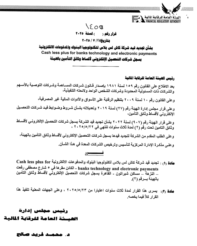 لمدة 3 سنوات.. تجديد قيد «كاش لس بلاس» بسجل شركات التحصيل الإلكتروني لأقساط التأمين بواسطة إسلام عبد الحميد 28 يوليو 2025 | 9:05 ص كتب إسلام عبد الحميد 28 يوليو 2025 | 9:05 ص التأمين الرقمي - أرشيفية النشر FacebookTwitterPinterestLinkedinWhatsappTelegramEmail 164 جددت الهيئة العامة للرقابة المالية قيد شركة كاش لس بلاس لتكنولوجيا البنوك والمدفوعات الإلكترونية بسجل شركات التحصيل الإلكتروني لأقساط وثائق التأمين. ووفقًا للقرار رقم 1455 لسنة 2025، فإنه تقرر تجديد قيد شركة “كاس لس بلاس” بسجل شركات التحصيل الإلكتروني لأقساط التأمين بالهيئة برقم (2) لمدة 3 سنوات اعتبارًا من 23 مايو 2025، وعلى الجهات المعنية تنفيذ كلا فيما يخصه. إقرأ أيضاً الرقابة المالية تصدر 4 قرارات لتعزيز تنظيم تمويل المشروعات الصغيرة ومتناهية الصغر تابعة لـ«ماريدايف» توقع عقود بقطر بقيمة 10 ملايين دولار شركات التأمين تسدد تعويضات تتخطى 18 مليار جنيه خلال الربع الثالث من العام ضوابط قيد شركات التحصيل الإلكترونى لأقساط وثائق التأمين يذكر أنه قد اشترطت الهيئة العامة للرقابة المالية على الشركات الراغبة في القيد بسجلات شركات التحصيل الإلكتروني لأقساط وثائق التأمين تقديم مستنداً يفيد موافقة البنك المركزي المصري على قيام الشركة بتقديم خدمات المدفوعات الإلكترونية لقيدها بالسجلات. جاء ذلك وفقاً لما تضمنه قرار مجلس إدارة الهيئة برئاسة الدكتور محمد فريد الصادر برقم رقم 211 لسنة 2024، الصادر خلال أكتوبر الماضي، بشأن تعديل قرار مجلس إدارة الهيئة رقم 27 لسنة 2019 الخاص بشروط وضوابط قيد شركات التحصيل الإلكترونى لأقساط وثائق التأمين. ووفقاً لهذا القرار استحدثت الهيئة بعض الشروط والمستندات الواجب توافرها لدى الشركة الراغبة في القيد بسجلات الهيئة لشركات التحصيل الإلكتروني لأقساط التأمين، ومنها ألا تقل مدة مباشة شركة التصحيل للنشاط عن 3 سنوات سابقة على طلب القيد فى السجل، وفى حال عدم توافر تلك المدة فيجب ألا تقل حقوق ملكيتها عن 100 مليون جنيه. حددت الهيئة 20 مليون جنيه حداً أدنى لرأسمال شركات التحصيل الإلكتروني لأقساط وثائق التأمين واستحدثت الهيئة مستنداً جديداً لقيد الشركة، وتضمن هذا المستند تقديم ما يفيد موافقة البنك المركزى المصرى على قيام الشركة بتقديم خدمات المدفوعات الإلكترونية، كما ألزمت الهيئة الشركات بتقديم إقرار بإلتزامها بكافة ضوابط مزاولة النشاط وشروط التعاقد مع شركات التأمين وفقاً لما ينص عليه القرار. وأشار القرار إلى تعديل مستندات وإجراءات القيد بحيث يتطلب من شركة التحصيل آخر قوائم مالية معتمدة مرفقًا بها تقرير مراقب الحسابات أو آخر مركز مالي معتمد سابق على تاريخ طلب القيد بالسجل، بحسب الأحوال. كما يجب على الشركة تقديم وثيقة تأمين مسئولية مهنية من إحدى شركات التأمين المصرية المرخص لها من الهيئة لتغطية إخطار المهنة بحدود مسئولية بنسبة (10%) من إجمالي إيرادات الشركة وفقًا لآخر قوائم مالية أو مركز مالي معتمد عند التقدم بطلب القيد لأول مرة، على أن تجدد تلك الوثيقة سنويًا بحدود مسئولية بنسبة (10%) من إجمالى قيمة الأقساط التأمينية المحصلة عن العام السابق. وعدلت الهيئة شروط القيد بسجل شركات التحصيل الإلكتروني لأقساط وثائق التأمين، بحيث تم رفع الحد الأدنى لرأسمال هذه الشركات إلى 20 مليون جنيه أو ما يعادله بالعملات الأجنبية، على ألا تقل حقوق الملكية عن رأس المال المدفوع. اللينك المختصرللمقال: https://amwalalghad.com/7jjx أقساط وثائق التأمينالتحصيل الإلكترونيالتحصيل الإلكتروني لأقساط التأمينالهيئة العامة للرقابة الماليةكاش لس بلاس