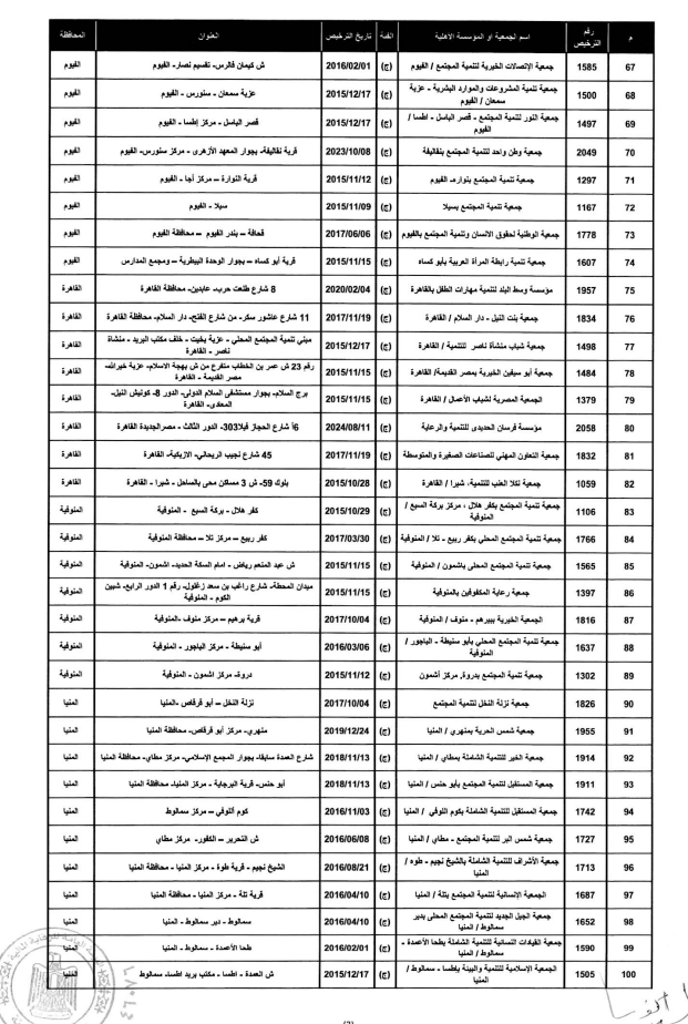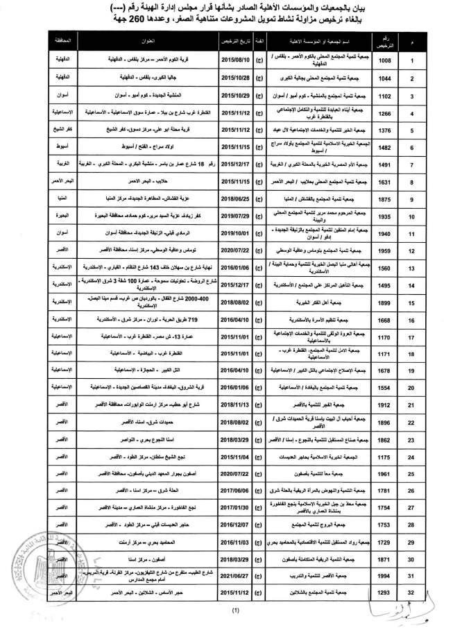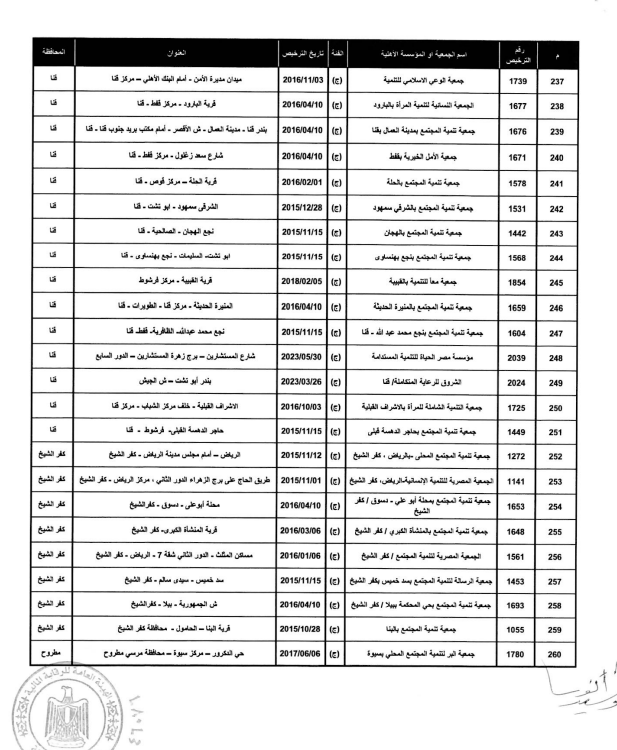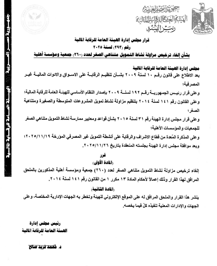 الرقابة المالية تلغي تراخيص 260 جمعية ومؤسسة للتمويل متناهي الصغر بواسطة تقى حاتم 3 ديسمبر 2025 | 10:22 ص كتب تقى حاتم 3 ديسمبر 2025 | 10:22 ص متناهي الصغر النشر FacebookTwitterPinterestLinkedinWhatsappTelegramEmail 32 أصدرت الهيئة العامة للرقابة المالية قرار رقم 293 لعام 2025؛ بشأن إلغاء ترخيص مزاولة نشاط التمويل متناهي الصغر لعدد 260 جمعية ومؤسسة أهلية، إعمالاً لأحكام المادة 13 مكرر 1 من القانون رقم 141 لعام 2014. تتمثل ابرز الجمعيات والمؤسسات الأهلية التي ألغى تراخيصها في؛ جمعية تنمية المجتمع المحلي بالكوم الأحمر – بلقاس /الدقهلية، وجمعية تنمية المجتمع المحلي بجالية الكبرى، وجمعية تنمية المجتمع بالمنشية – كوم أمبو / أسوان ، وجمعية أبناء العبابدة للتنمية والتكامل الاجتماعي بالقنطرة غرب، بالإضافة إلى جمعية الخير لتنمية والخدمات الاجتماعية لال عياد (ج). إقرأ أيضاً الرقابة المالية تعتمد لـ«المصرية للتأمين التعاوني» وثيقة مخاطر عدم سداد مستحقات التأجير التمويلي الرقابة المالية : الانتهاء من أول قاعدة بيانات موحدة لجهات تسييل التمويل الاستهلاكي وعمليات الاحتيال الرقابة المالية تصدر أول دليل خدمات متكامل للقطاع المالي غير المصرفي كما ألغت الهيئة تراخيص كلاً من الجمعية الخيرية الإسلامية لتنمية المجتمع بأولاد سراج / أسيوط، وجمعية الأم المصرية الخيرية بالمحلة الكبري / الغربية، وجمعية تنمية المجتمع المحلى بحلايب / البحر الأحمر، وجمعية تنمية المجتمع بالقشاش / المنيا، بجانب جمعية المرحوم محمد مرير لتنمية المجتمع المحلي والبيئة وقد اطلعت الرقابة المالية على قانون رقم 10 لعام 2009 بشأن تنظيم الرقابة على الأسواق والأدوات المالية غير المصرفية، وعلى قرار رئيس الجمعورية رقم 192 لعام 2009 بإصدار النظام الأساسي للهيئة العامة للرقابة المالية. اللينك المختصرللمقال: https://amwalalghad.com/ef4m التمويل متناهي الصغرالجمعيات والمؤسسات الأهليةالقطاع المالي غير المصرفيالهيئة العامة للرقابة الماليةمتناهي الصغر
