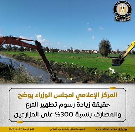 المركز الإعلامي لمجلس الوزراء يوضح حقيقة زيادة رسوم تطهير الترع والمصارف بنسبة 300% على المزارعين بواسطة أموال الغد 27 يناير 2026 | 1:59 م كتب أموال الغد 27 يناير 2026 | 1:59 م النشر FacebookTwitterPinterestLinkedinWhatsappTelegramEmail 33 نشر المركز الإعلامي لمجلس الوزراء بيانًا عبر منصاته على مواقع التواصل الاجتماعي، أوضح خلاله حقيقة ما تم تداوله بشأن زيادة رسوم تطهير الترع والمصارف بنسبة 300% على المزارعين. وأوضح المركز الإعلامي أنه بالتواصل مع وزارة الزراعة واستصلاح الأراضي، أفادت أنه لم يتم إقرار أي زيادات بهذا الشأن، وأن رسوم التطهير ثابتة دون أن يطرأ عليها أي زيادة، وفقًا لما هو معمول به منذ العام الماضي. وأوضحت الوزارة أن تكلفة ساعة التطهير تبلغ حوالي ٣٥٠ جنيهًا، وتكفي لتطهير مساحة تصل إلى ٤ أفدنة، بما يعادل نحو 88 جنيهًا للفدان الواحد، وذلك لمدة ٣ سنوات، أي بمتوسط سنوي يصل لحوالي ٢٩ جنيهًا للفدان. وتهيب الوزارة بالمواطنين عدم الانسياق وراء المعلومات المغلوطة التي تستهدف إثارة الرأي العام، واستقاء المعلومات من المصادر الرسمية. اللينك المختصرللمقال: https://amwalalghad.com/s41j المركز الإعلامي لمجلس الوزارء