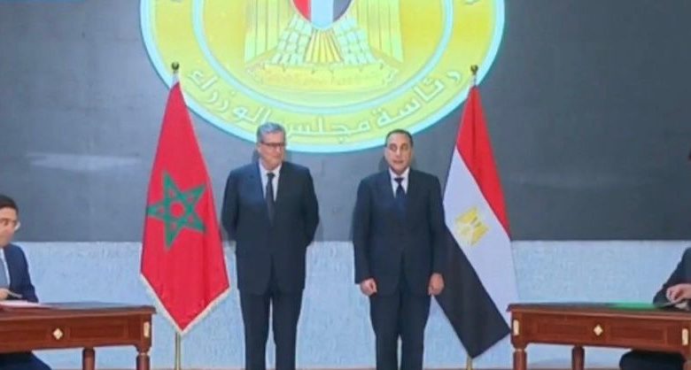 رئيسا وزراء مصر والمغرب يشهدان توقيع عدد من وثائق التعاون بين البلدين بواسطة ندى عبد العزيز 6 أبريل 2026 | 2:44 م كتب ندى عبد العزيز 6 أبريل 2026 | 2:44 م النشر FacebookTwitterPinterestLinkedinWhatsappTelegramEmail 18 شهد اليوم الدكتور مصطفى مدبولي، رئيس مجلس الوزراء، و عزيز أخنوش، رئيس حكومة المملكة المغربية الشقيقة، مراسم توقيع عددٍ من الوثائق في عدة مجالات بهدف دعم وتعزيز العلاقات الثنائية بين البلدين الشقيقين. وخلال مراسم التوقيع التي جرت بمقر الحكومة بالعاصمة الجديدة، تم توقيع بروتوكول للتعاون الصناعي بين حكومة جمهورية مصر العربية، وحكومة المملكة المغربية، وقعه من الجانب المصري المهندسخالد هاشم، وزير الصناعة، ومن الجانب المغربي رياض مَزُور، وزير الصناعة والتجارة. إقرأ أيضاً غدا.. مؤتمر صحفى لرئيس الوزراء فى ضوء تطورات الأحداث الإقليمية بالمنطقة وزيرة الثقافة: حماية الهوية وتحصين الأجيال عبر مُبادرات تستهدف جيلي «ألفا و زد» من خلال شراكات بين القطاع الخاص والمدارس رئيس الوزراء يقر 9 مليارات جنيه لتعزيز خدمات الصحة والعلاج على نفقة الدولة وتم توقيع اتفاق تعاون في مجال الرياضة، وقعه من الجانب المصري و جوهر نبيل، وزير الشباب والرياضة، ومن الجانب المغربي ناصر بوريطة، وزير الشئون الخارجية والتعاون الإفريقي والمغاربة المقيمين بالخارج. كما تم توقيع اتفاق تعاون في مجال الشباب، وقعه من الجانب المصري جوهر نبيل، وزير الشباب والرياضة، ومن الجانب المغربي و محمد المهدي بنسعيد، وزير الشباب والثقافة والتواصل. وتم أيضاً توقيع مذكرة تفاهم للتعاون في المجال الثقافي، وكذا البرنامج التنفيذي للتعاون في هذا المجال؛ ووقعهما من الجانب المصري الدكتورة جيهان زكي، وزيرة الثقافة، ومن الجانب المغربي محمد المهدي بنسعيد، وزير الشباب والثقافة والتواصل. كما تضمنت المراسم توقيع مذكرة تفاهم لتعزيز العلاقات الاستثمارية الثنائية بين الهيئة العامة للاستثمار والمناطق الحرة، والوكالة المغربية لتنمية الاستثمارات والصادرات، وقعها من الجانب المصري الدكتور محمد فريد، وزير الاستثمار والتجارة الخارجية، ومن الجانب المغربي كريم زيدان، الوزير المنتدب لدى رئيس الحكومة المُكلف بالاستثمار والتقائية وتقييم السياسات العمومية. وتم كذلك توقيع مذكرة تفاهم للتعاون في مجال مكافحة التصحر، وقعها من الجانب المصري علاء الدين فاروق، وزير الزراعة واستصلاح الأراضي، ومن الجانب المغربي أحمد البواري، وزير الفلاحة والصيد البحري والتنمية القروية والمياه والغابات. كما تم توقيع اتفاق المساعدة الإدارية المتبادلة في المجال الجمركي، وكذا اتفاق بين حكومة جمهورية مصر العربية وحكومة المملكة المغربية، بشأن تجنب الازدواج الضريبي ومنع التهرب من الضرائب بالنسبة للضرائب على الدخل، ووقعهما من الجانب المصري أحمد كجوك، وزير المالية، ومن الجانب المغربي و نادية فتاح، وزيرة الاقتصاد والمالية. كما شهدت المراسم قيام الدكتور بدر عبد العاطي، وزير الخارجية والتعاون الدولي والمصريين بالخارج؛ من الجانب المصري، وناصر بوريطة، وزير الشئون الخارجية والتعاون الإفريقي والمغاربة المقيمين بالخارج؛ من الجانب المغربي، بتوقيع عدة وثائق وهي: مذكرة تفاهم للتعاون بين معهد الدراسات الدبلوماسية بجمهورية مصر العربية، والأكاديمية الدبلوماسية بالمغرب، وكذا مذكرة تفاهم للتعاون في مجال الإسكان، إلى جانب بروتوكول تعاون في مجال الكهرباء والطاقات الجديدة والمتجددة، فضلاً عن بروتوكول تعاون في المجال الصحي والدوائي، بالإضافة إلى مذكرة تفاهم للتعاون في مجال السياحة. واختتمت المراسم بقيام كل من الدكتور مصطفى مدبولي، رئيس مجلس الوزراء، وعزيز أخنوش، رئيس حكومة المملكة المغربية الشقيقة، بالتوقيع على محضر الاجتماع الأول للجنة التنسيق والمتابعة المصرية ـ المغربية. اللينك المختصرللمقال: https://amwalalghad.com/elp1 الدكتور مصطفى مدبوليتوقيع عدد من وثائق التعاون بين مصر و ال